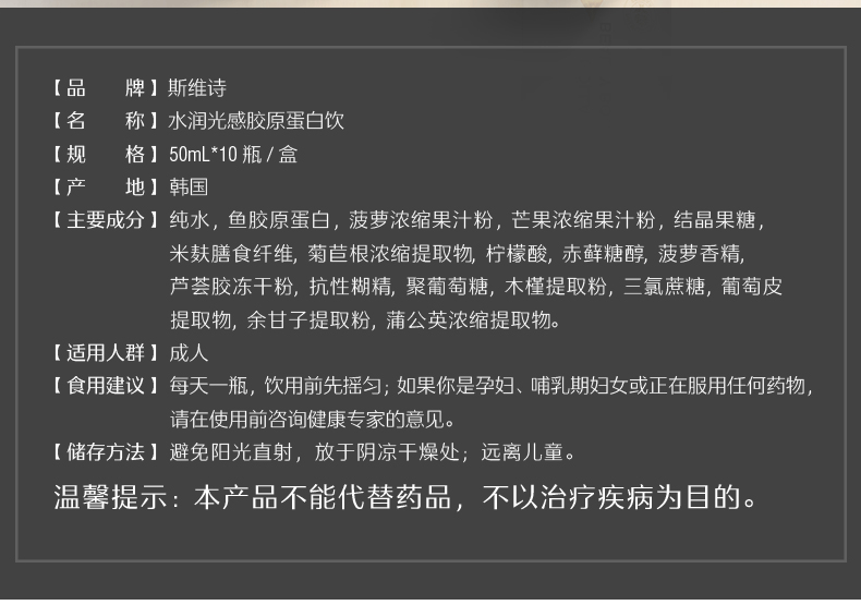 Высыпание во время линии [嘭] Swisse Swelle Poelly Gydrated Light Sensitivity Plink 50 мл*10 TK