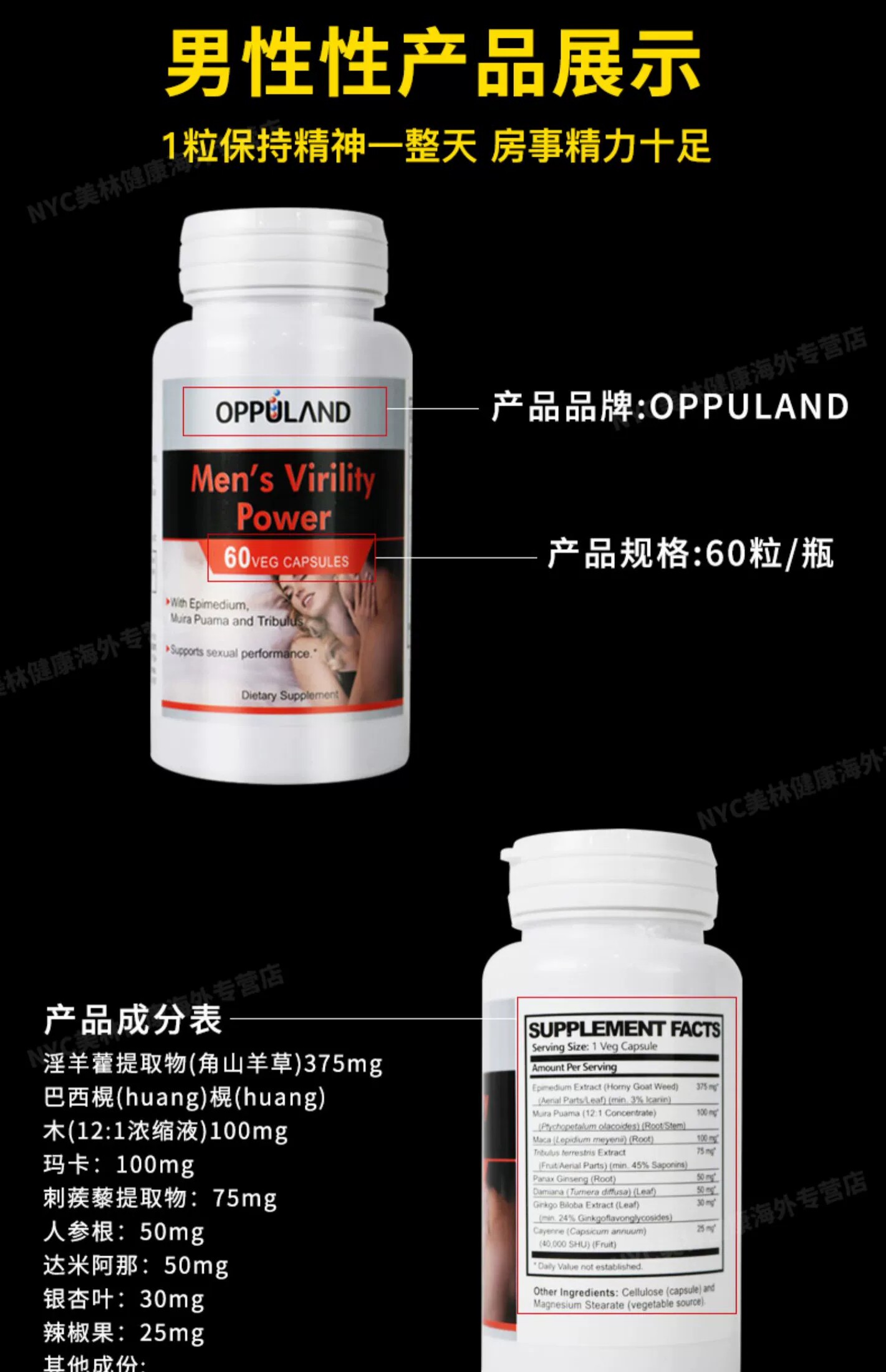 OPPULAND Махалитовая мака мака Tortee Мужское гормонское закусок тестостерона гипенткостерона продукты здоровья здоровья