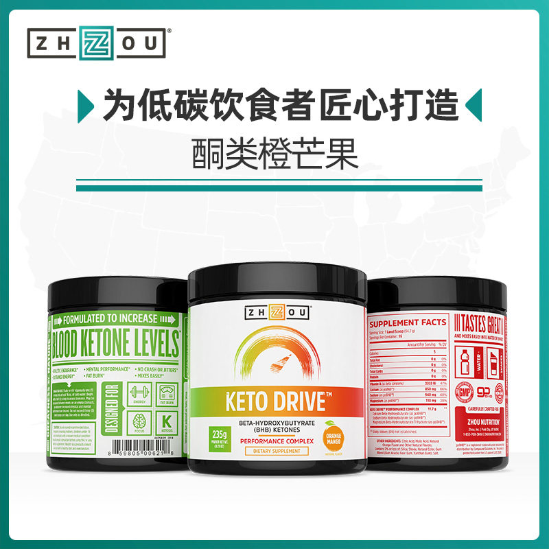 Американский импортный Zhou BHB Кетоновый добавка апельсиновая манго аромат 240 г кетогенный диету экзогенный кетогенный кетогенный