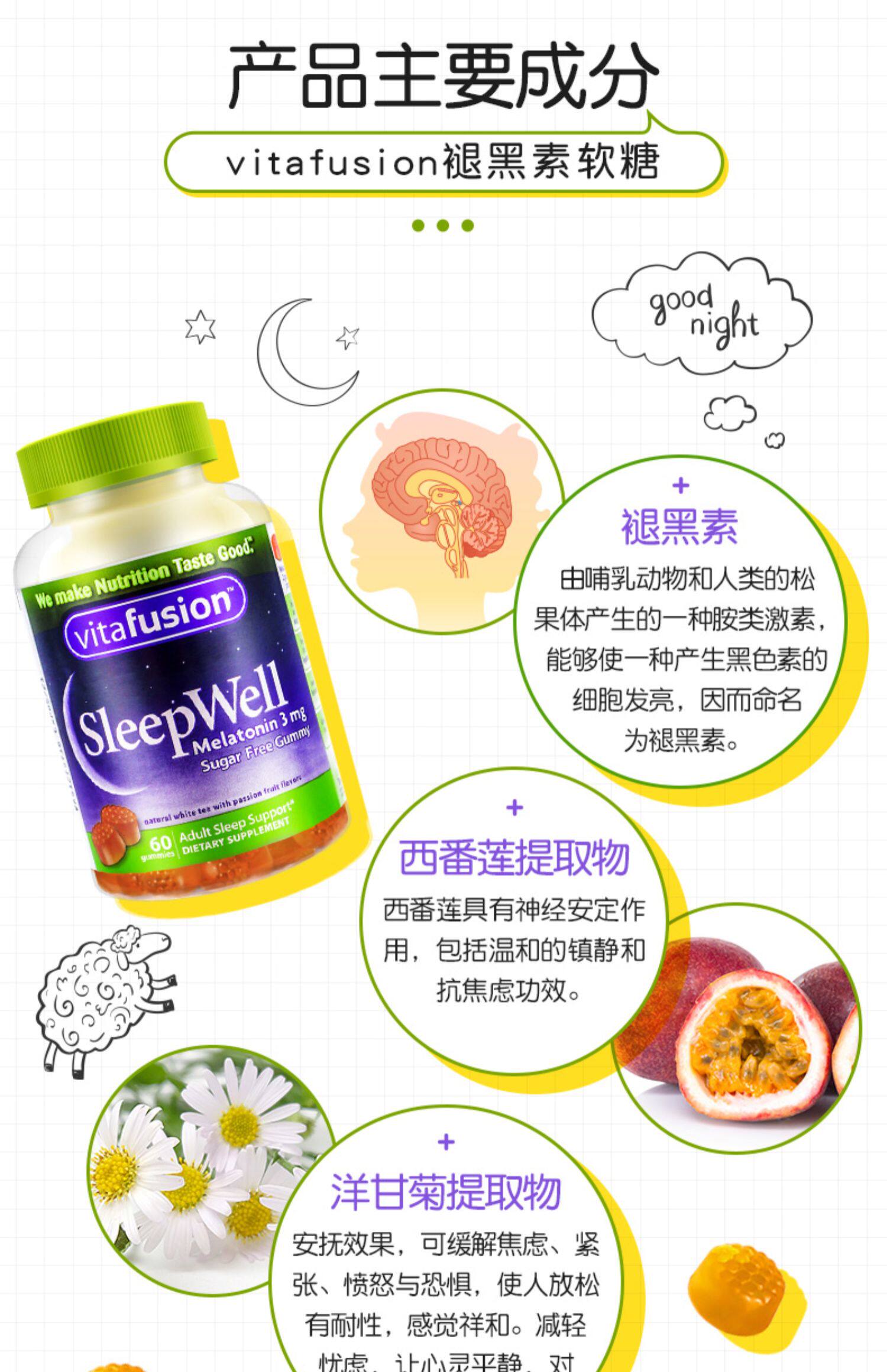 vitafusion Мелатонин Sleepwell Sleep Sleep Sakura Сон Сон и Удаление Мелаин 3 Бутылки спящих таблеток