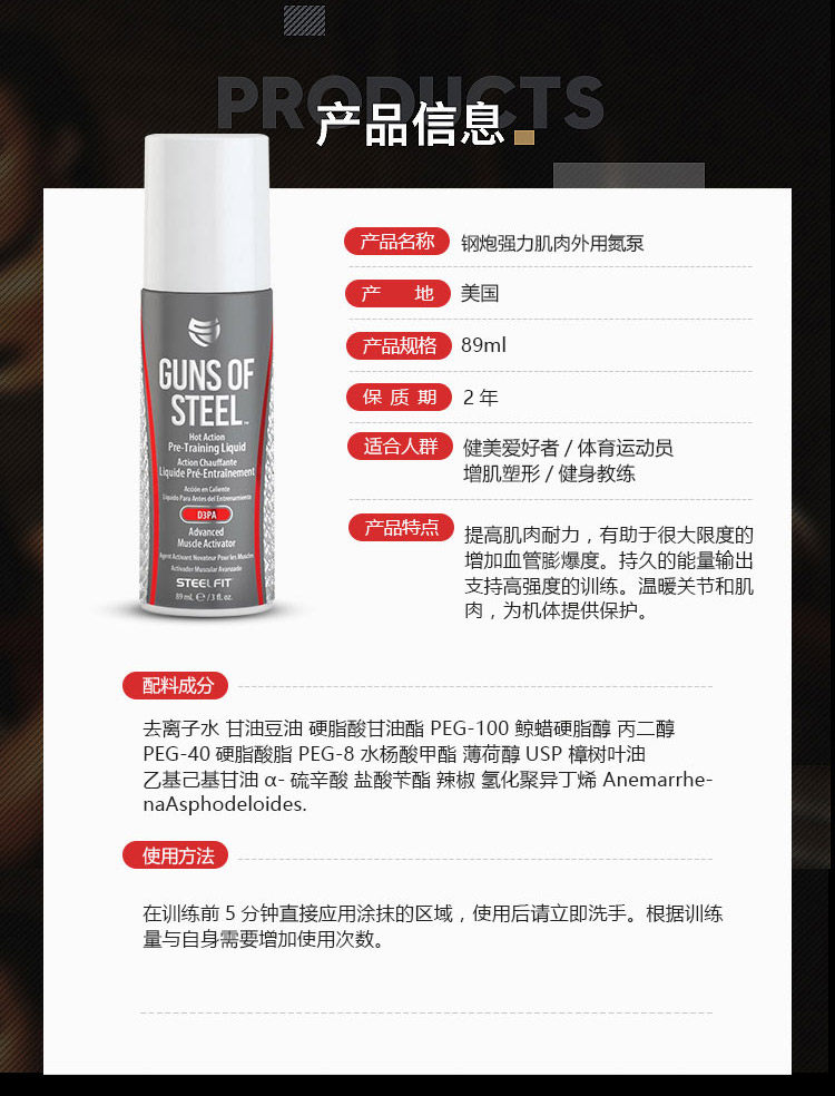 Американская стаи стальная стальная пушка сильные мышечные крема Внешнее применение азота для улучшения взрывной выносливости