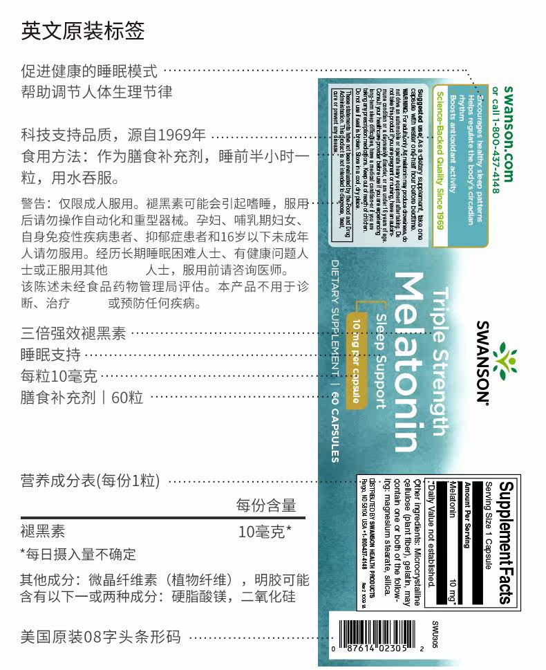 Swansen 3 раза мелатонин, чтобы помочь спящему спящему сон.