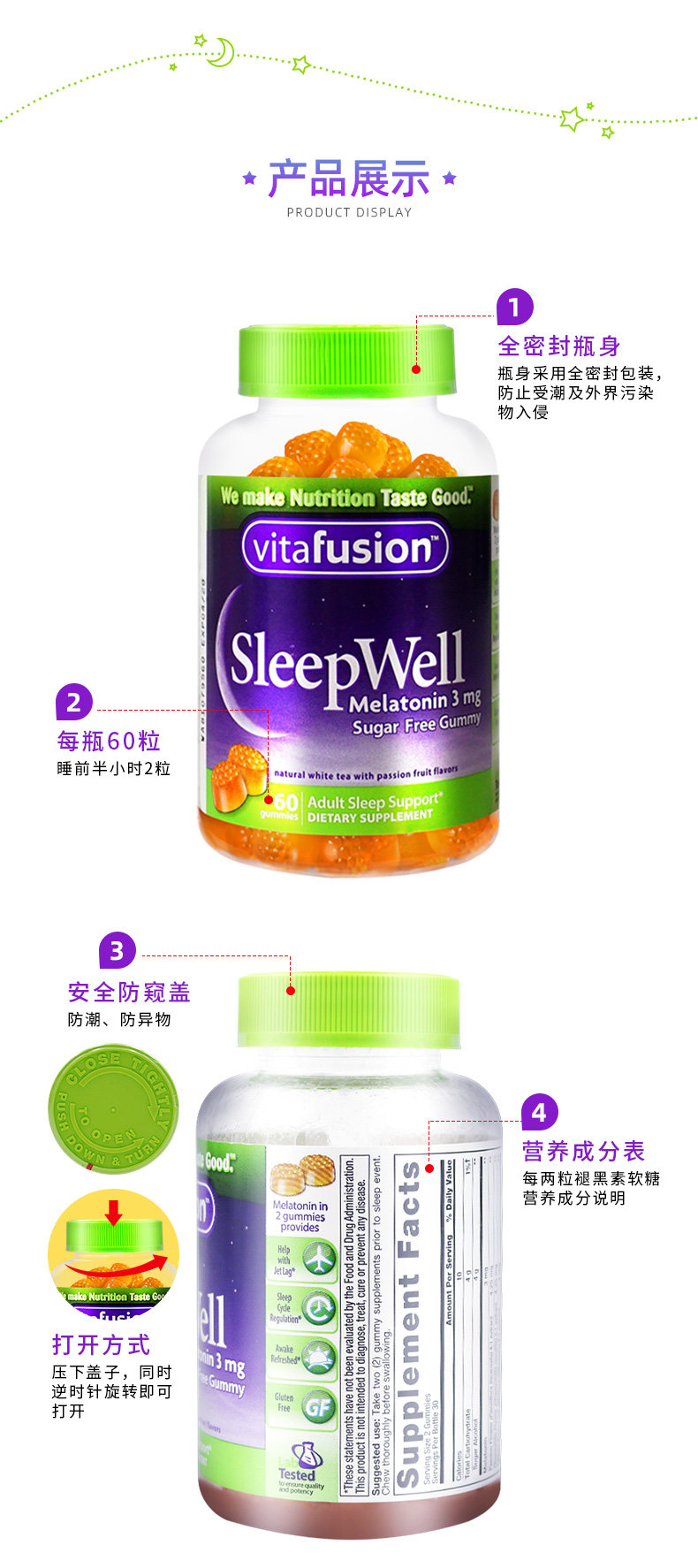 vitafusion Мелатонин Американский антианский сон сахар+свист с молоком