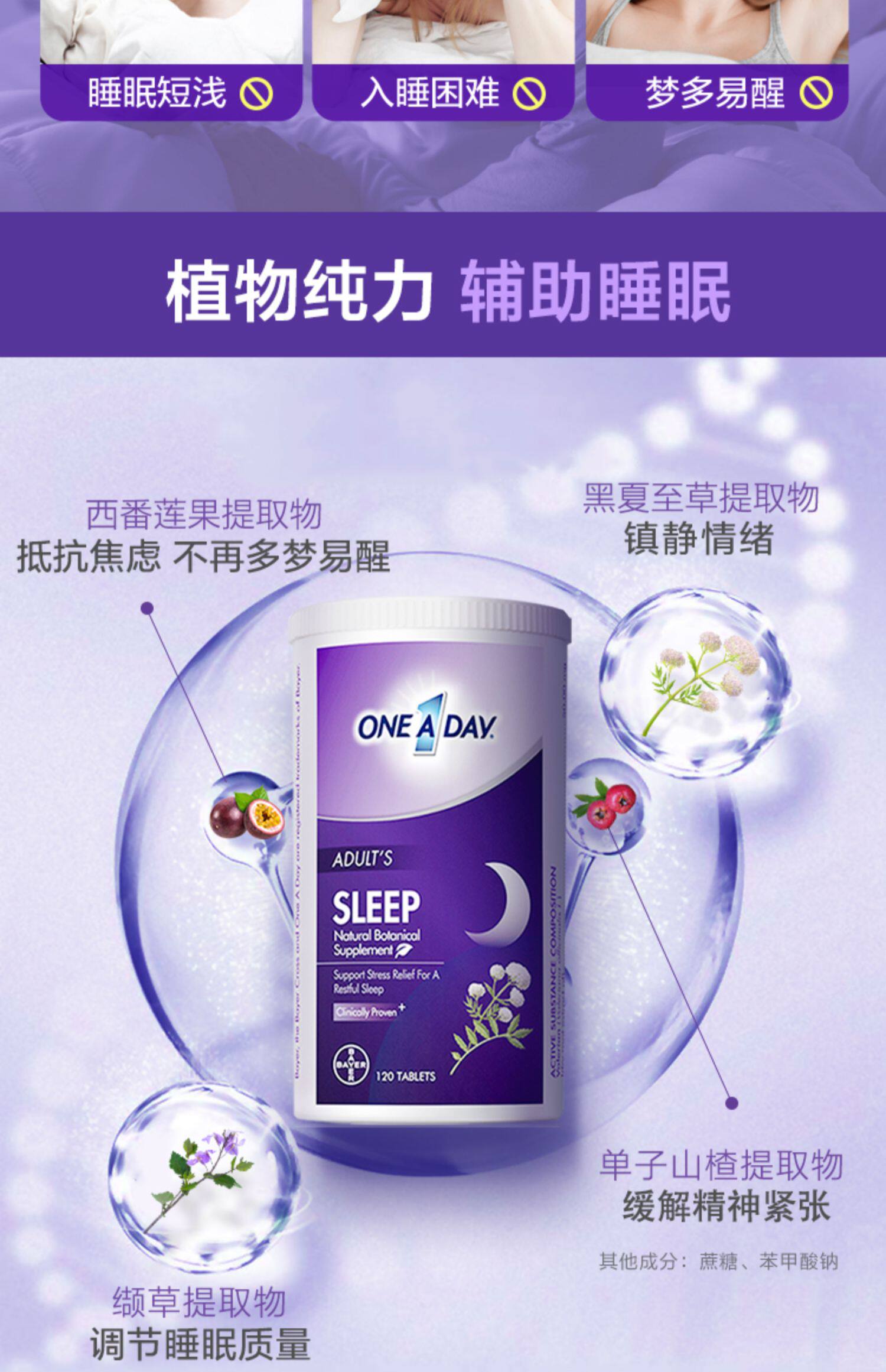 [Новый продукт] Bayer Oneaday Composite Удобные спящие таблетки успокаивают сон и сон чистыми растениями без мелатонина 120 зерен