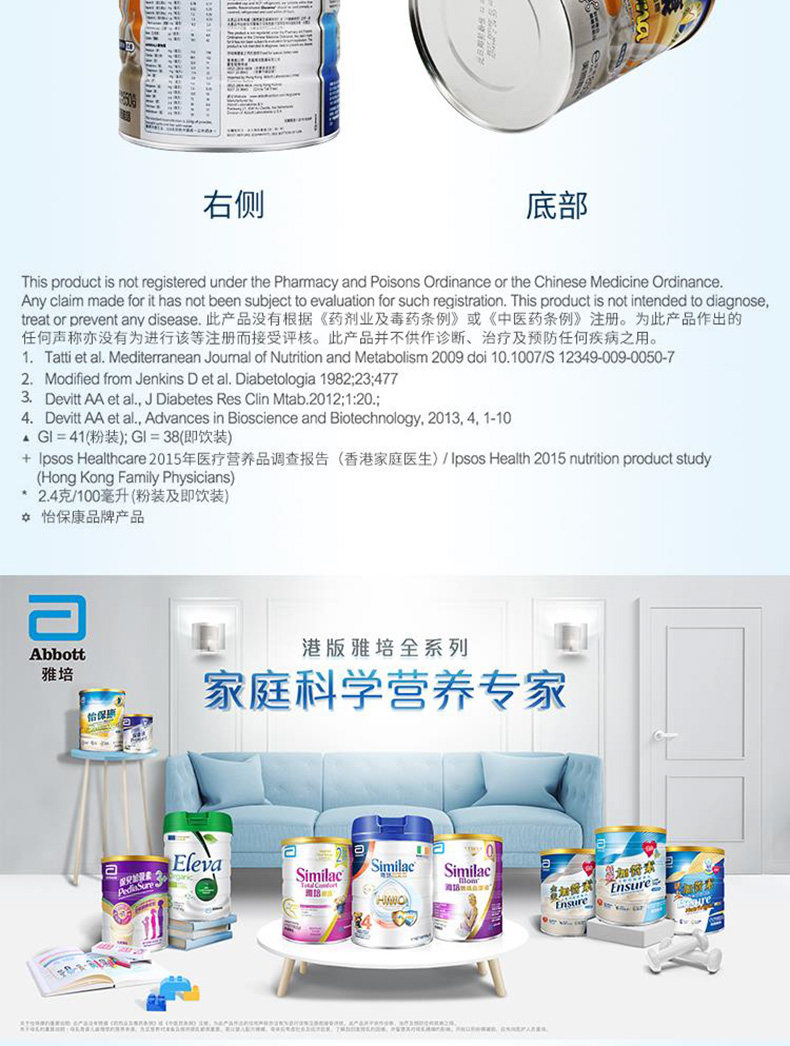 [Прямой бизнес] 3 банки гонконгской версии Эбботта Йибаоканга для взрослых средних и пожилых молочных порошков с высоким уровнем сахара в крови Специальный аромат ванили 850