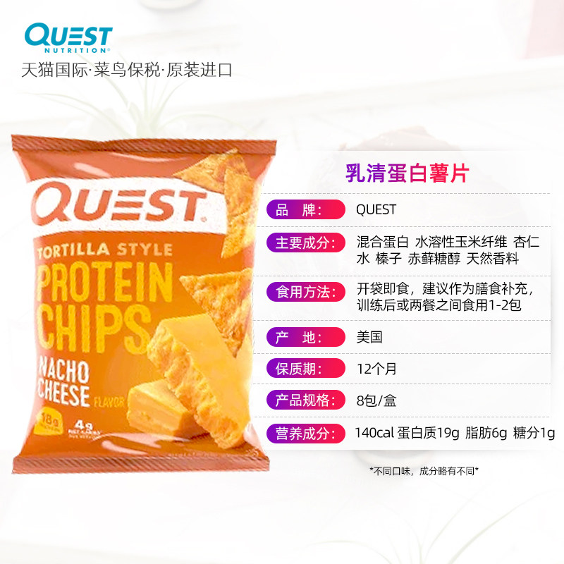 Импортные квестовые белковые чипы картофеля с низким содержанием куски для приема пищи, молоко -клейрная энергетическая палочка с высоким содержанием белка