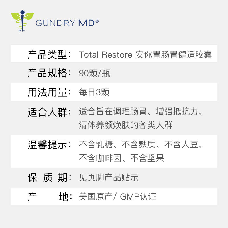 Gundry, вы желудочно желудочно -кишечные капсулы для увлажнения кишечной стенки для ремонта стенки кишечника для улучшения пищеварения и улучшения метеоризма