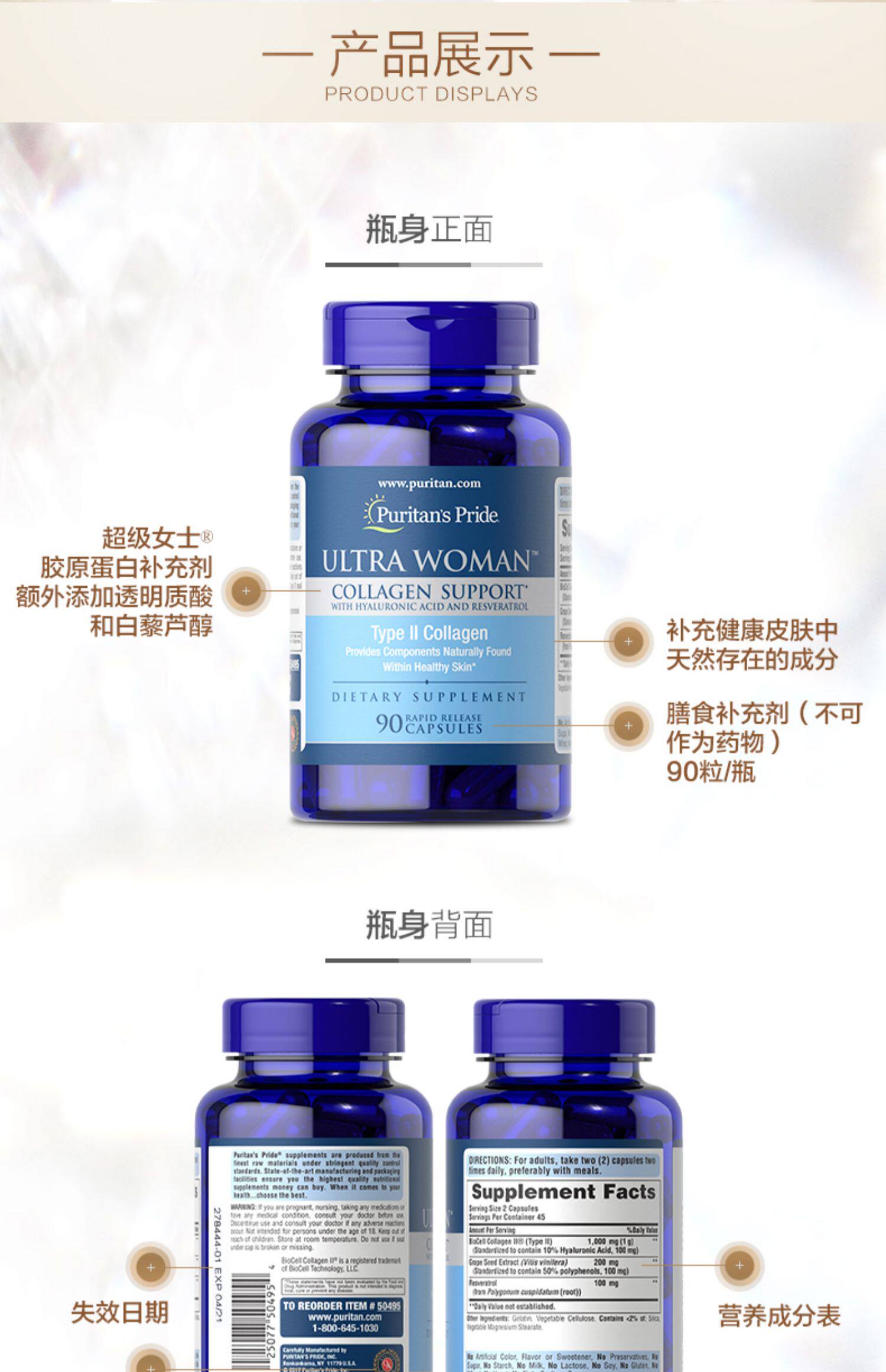 [Новое гостевое испытание] Призрачный мышечный нижний пептид пептальный коллаген -пептид гиалуроновой кислоты ресвератрол виноградные семена