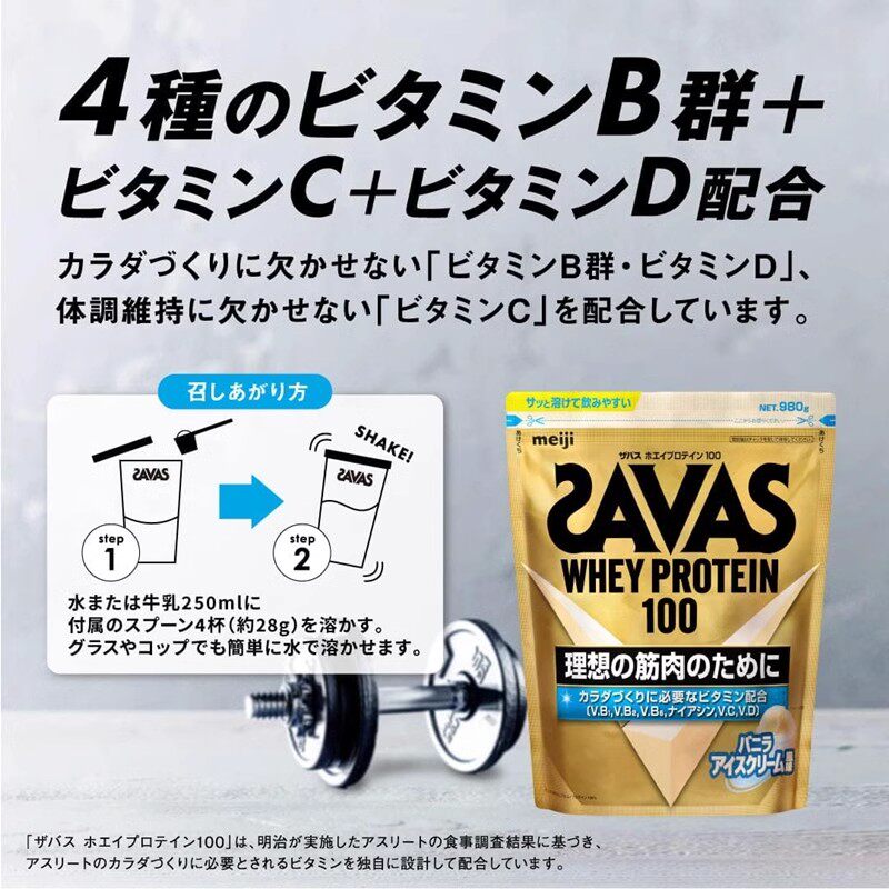 Японский мейдзи Савас сывороточный белок 980g ванильный аромат мороженого белка + множественные витамины для мышечного наращивания