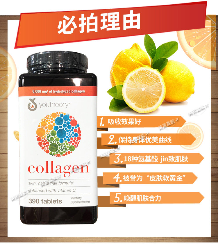 США Прямая почтовая рассылка USTheory Collagen Collagen Таблетки содержат 18 аминокислот+таблетки VC 390