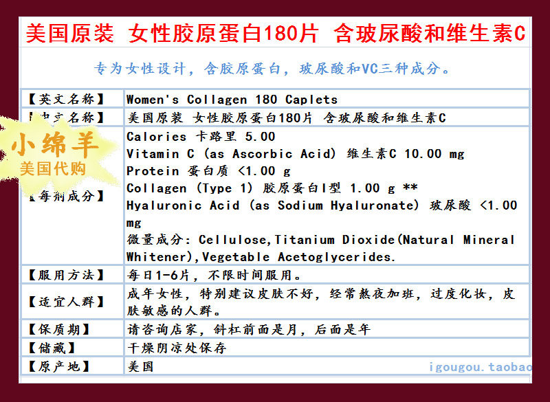 Витаминизированный увлажняющий коллаген с гиалуроновой кислотой, США, 180 штук