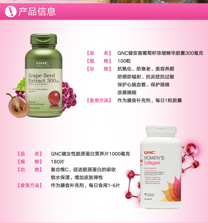 Американский GNC/Jian'an xixi гидролиз коллаген 180 капсулы+100 эссенций виноградных семян