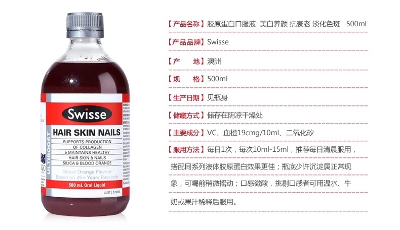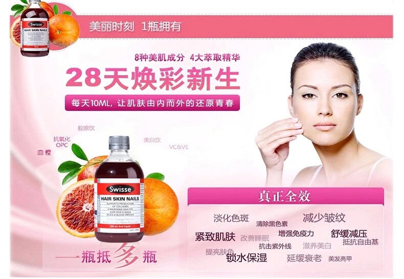 Вентилятор Bingbing рекомендует Dian Mom's Swisse Swisse Liquid Collagen Blood Orange Orange -Dimensional C500ML Белая красавица