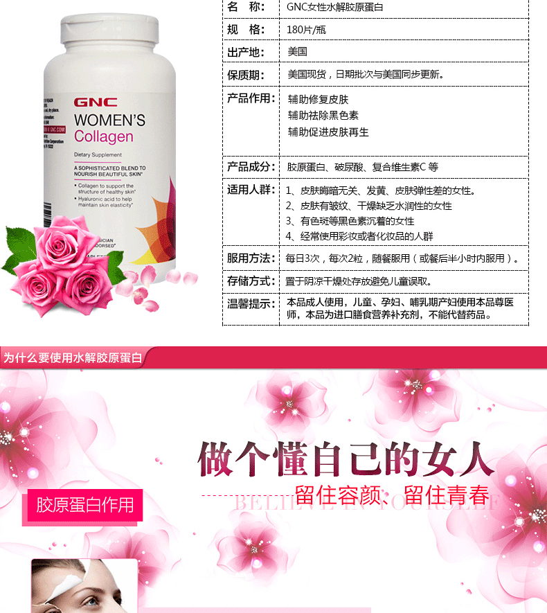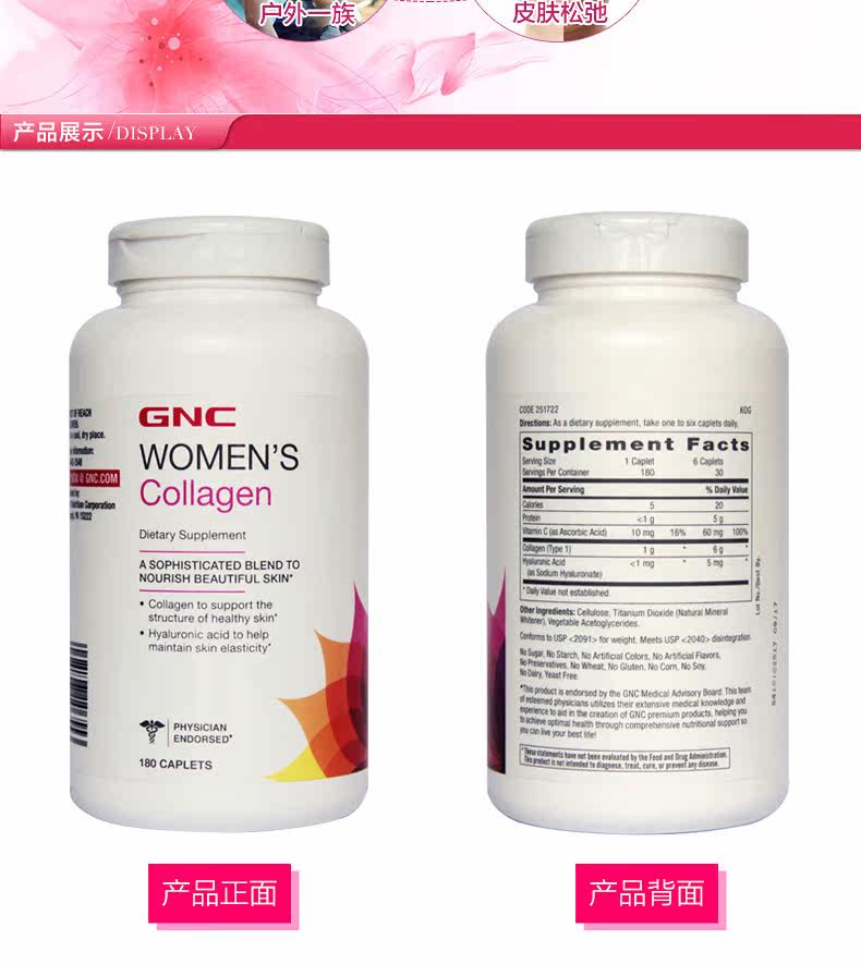 Увлажняющий восстанавливающий осветляющий антивозрастной коллаген, 180 штук, США