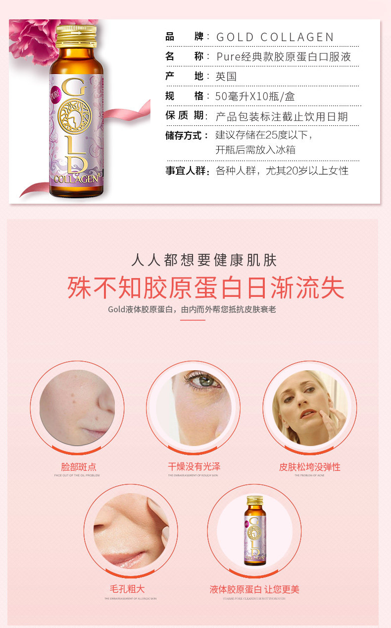 Жидкий коллаген из чистого золота 10*50 мл перорального жидкости Оригинальная новая дата