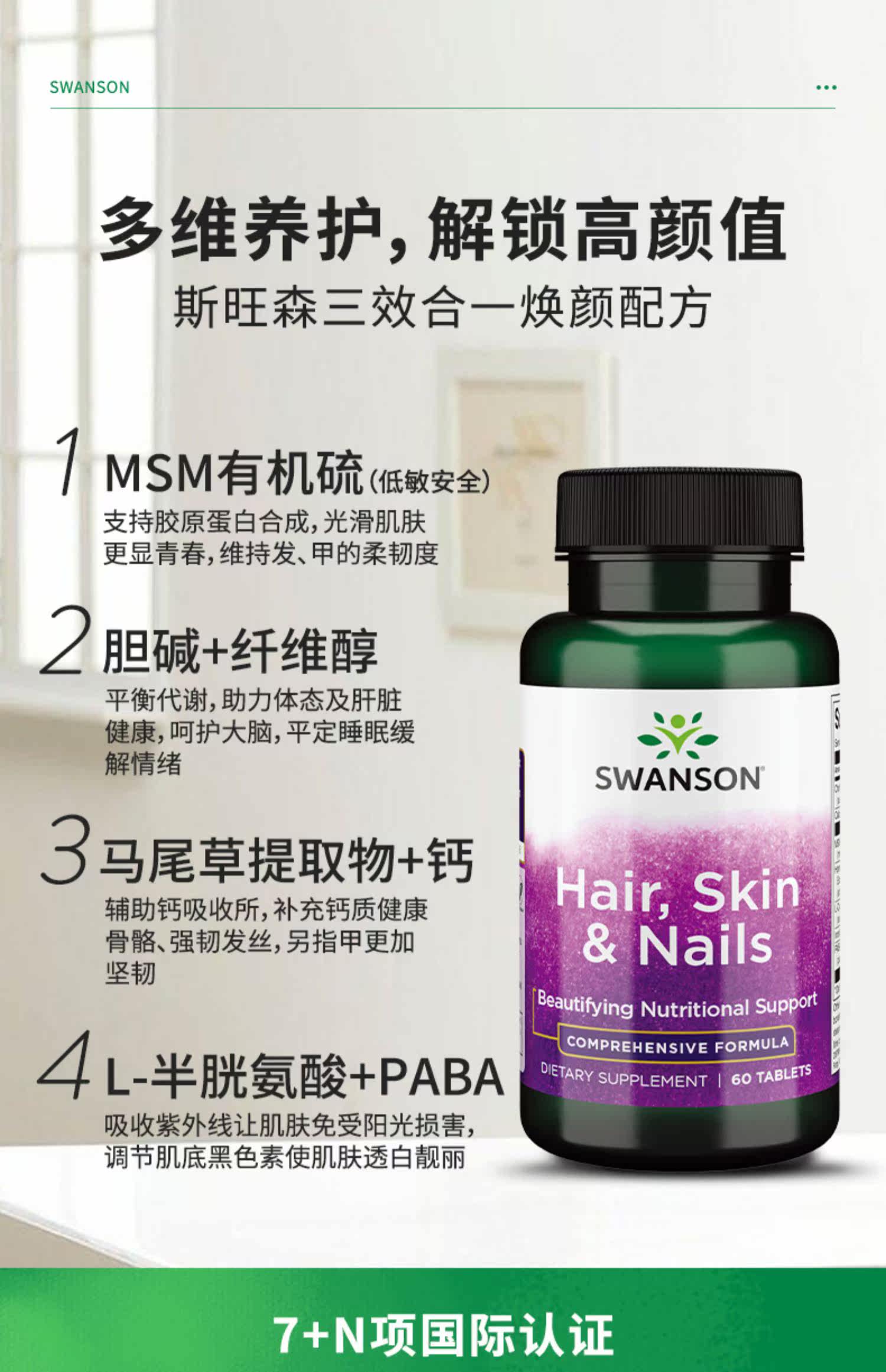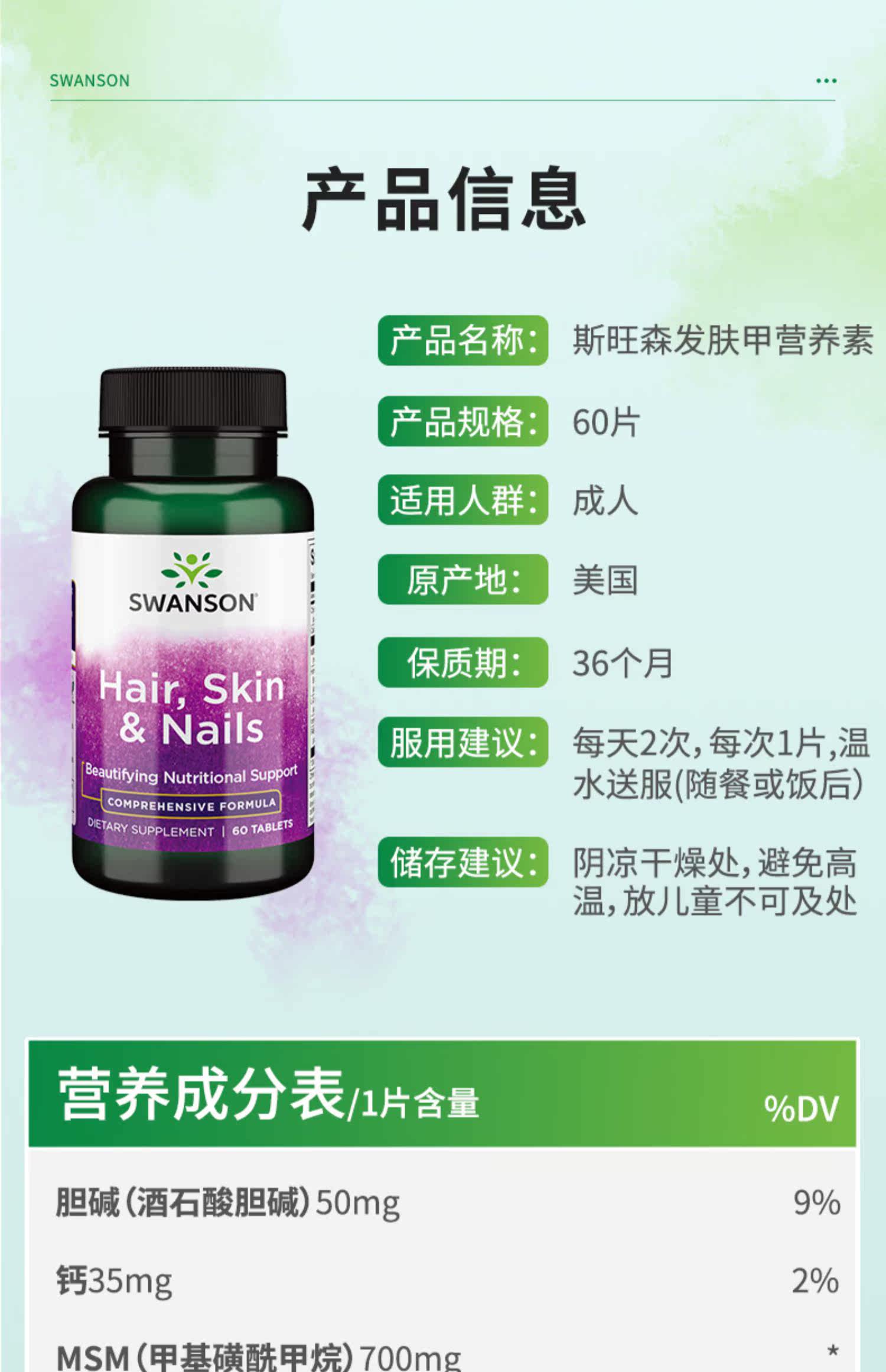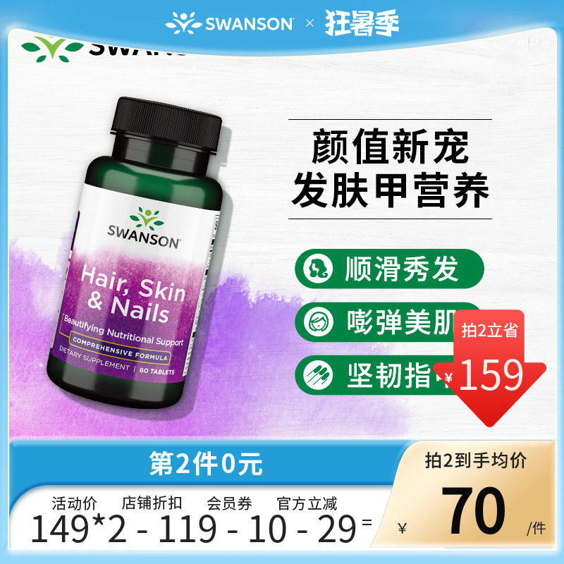 Американский Swanson Swansen Кожа кожа броня питания таблетки 60 Tlises Коллагеновых синтетических волос.