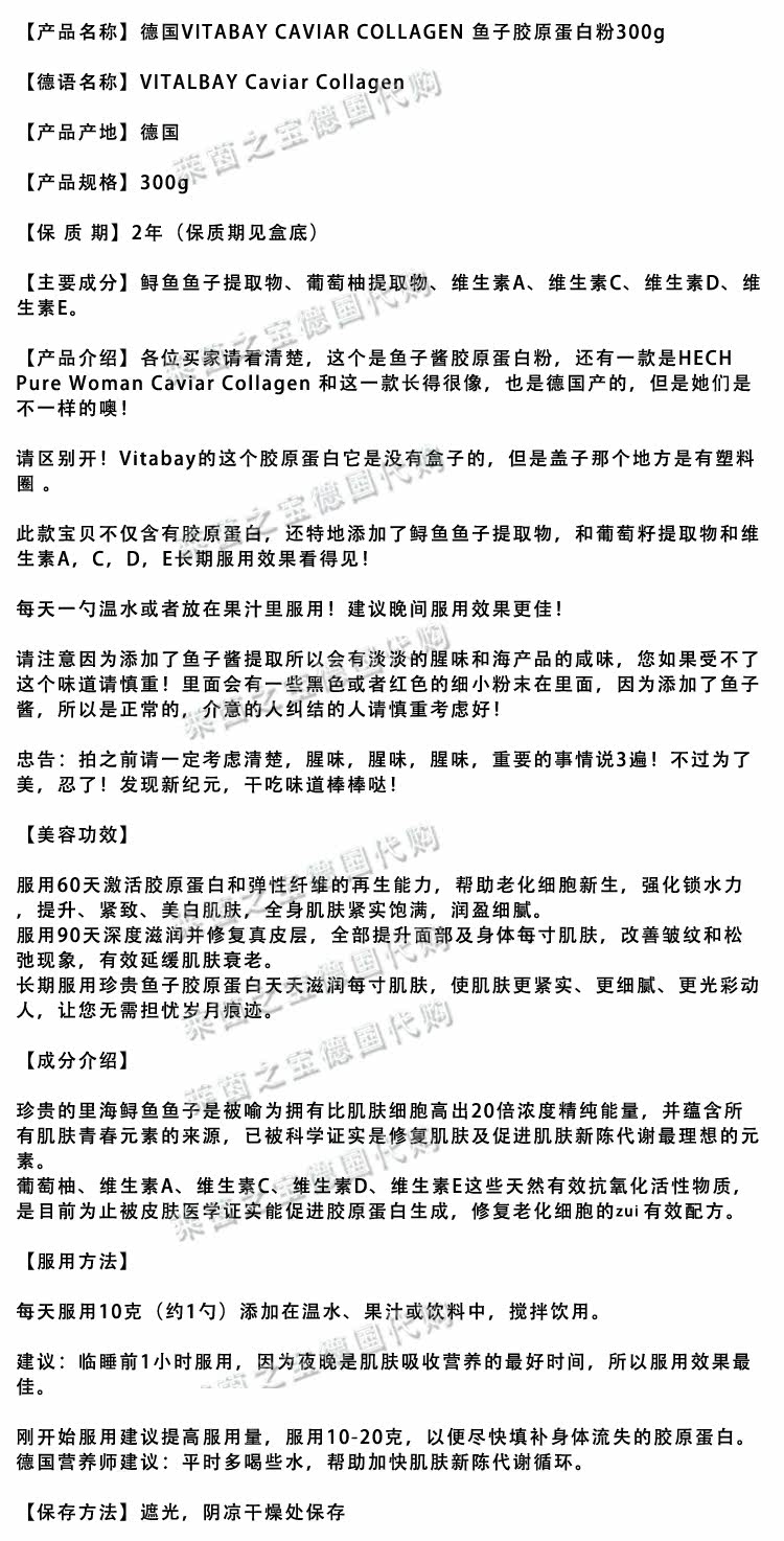 Немецкая прямая почтовая рассылка Vitabay Caviaar Collagen Caviar Collagin Pink 300G Богиня выбор
