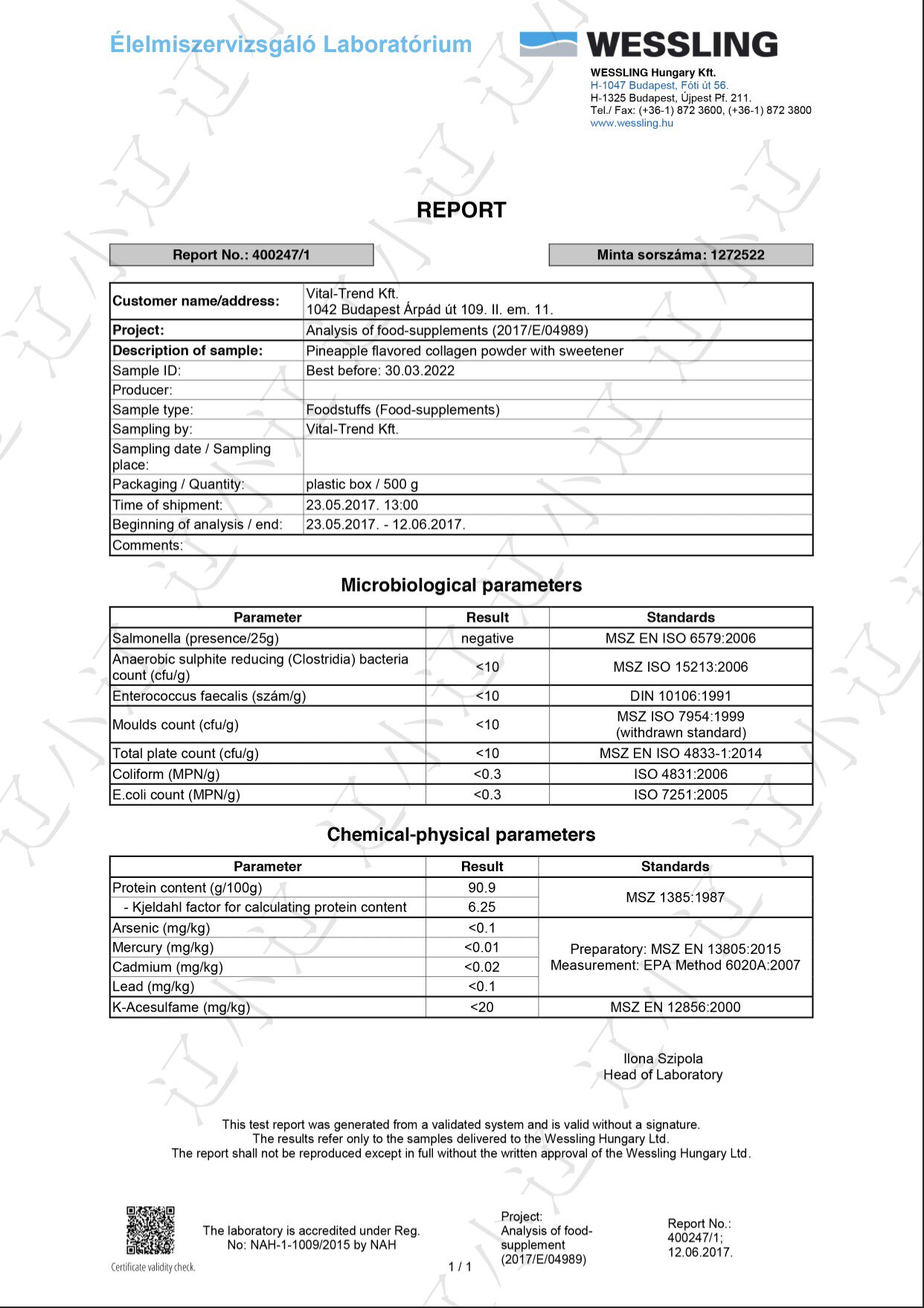 Отчет о тесте ингредиента