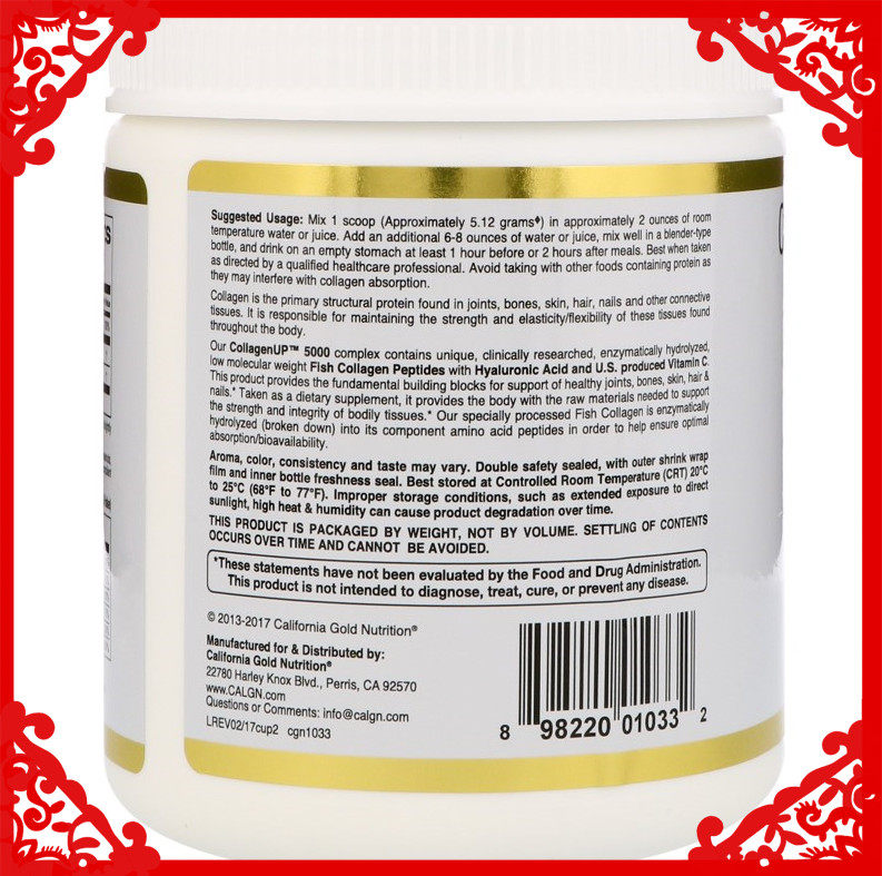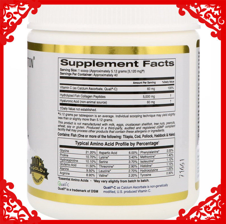 Американское калифорнийское питание в золоте гидролизовано мелкое молекулярное коллаген+гиалуроновая кислота