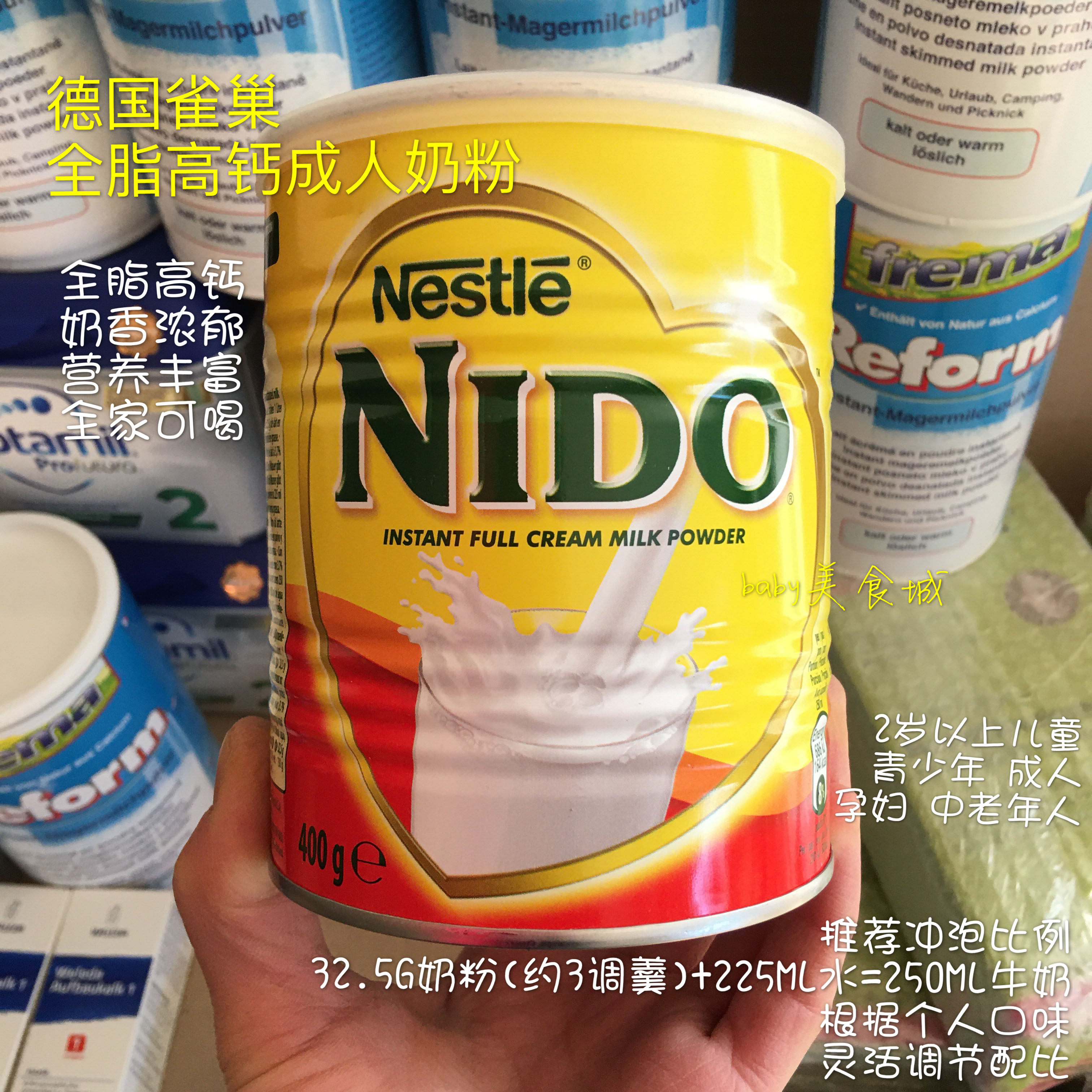 Германия реформировать порошок для взрослых, вековой бренд в Германии, изготовлен из научных методов.Холодная вода и горячая вода быстро растворяются, а также можно добавить кофе или чай для производства молочных коктейлей, йогурта, печенья, пирожных и т. Д.! Одна банка молочного порошка, множество способов поесть.Легкий вкус, богатое питание, высокий кальций и низкий жир, а не молоко!Это также может удовлетворить восхитительное удовольствие, добавляя белок, витамины и кальций!