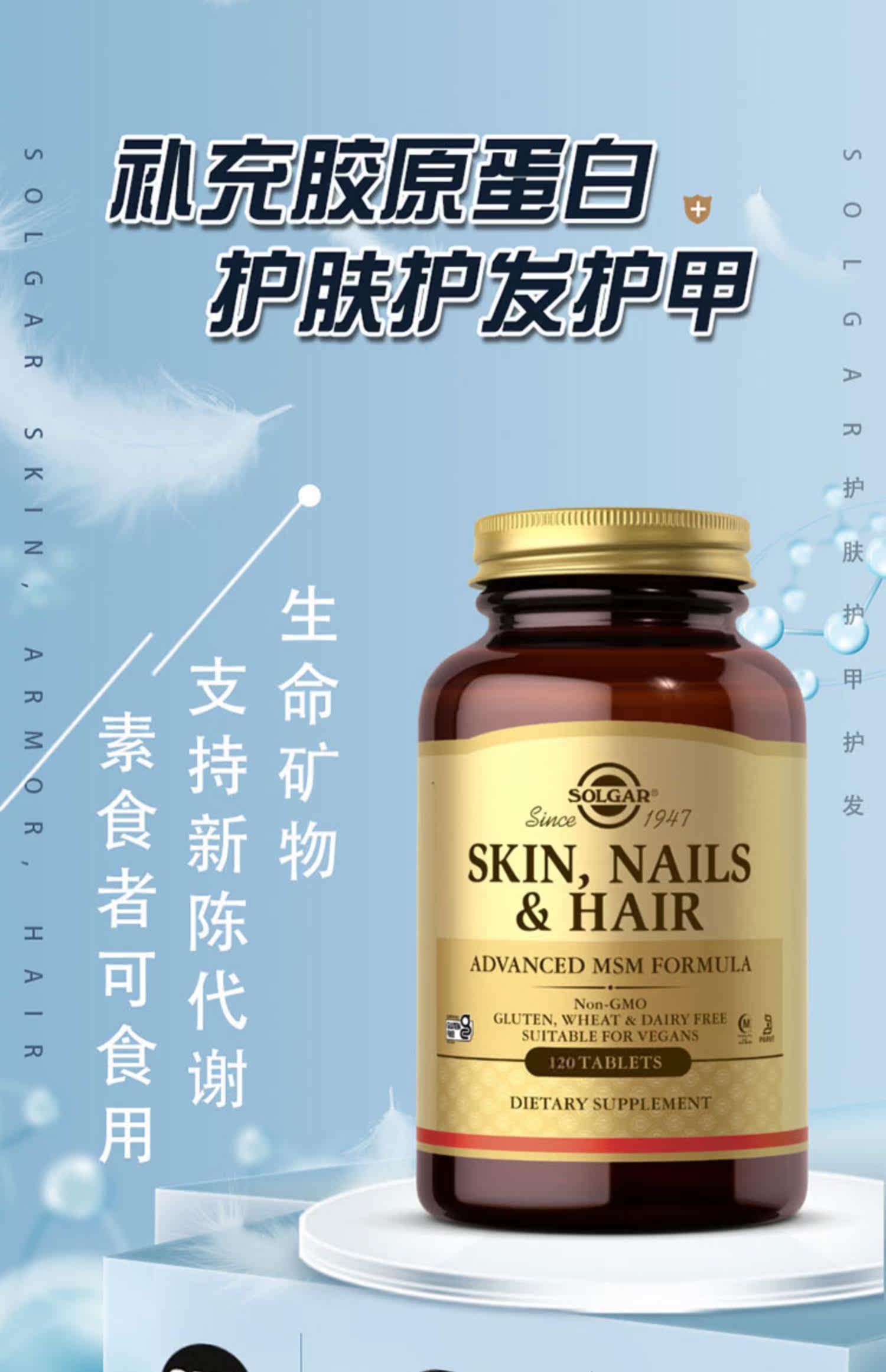 Американская импортная броня по уходу за волосами, кожа вегетарианская пленка коллагеновые таблетки+минерал Солгар всеобъемлющий ремонт
