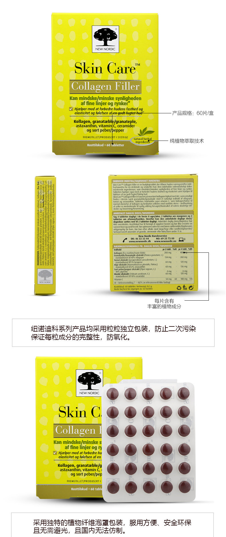 Витаминизированный разглаживающий коллаген для ухода за кожей, 60 штук, витамин C