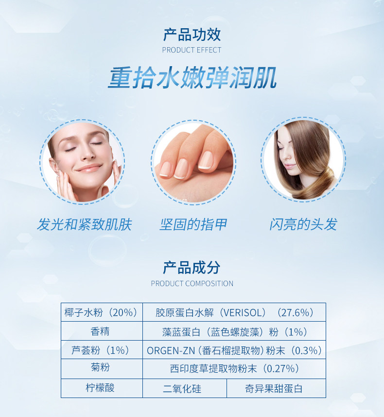 Осветляющий косметический порошок, антивозрастной коллаген, 100г