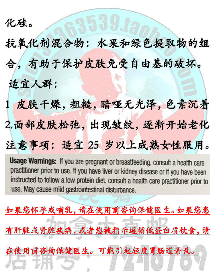 Гидролизованный коллаген: 4000 мг, помогает дополнить коллаген организма и повысить эластичность кожи.
