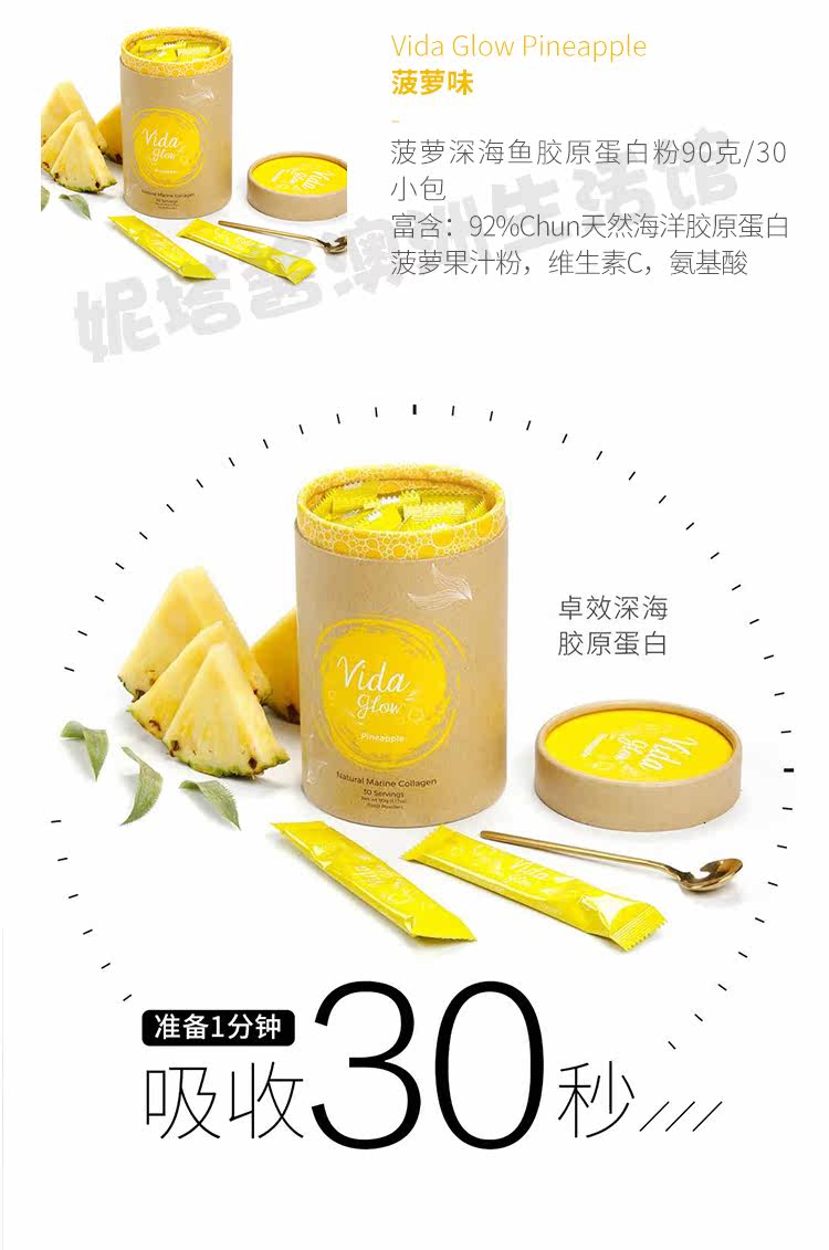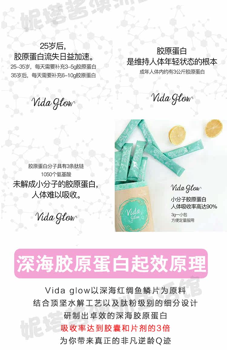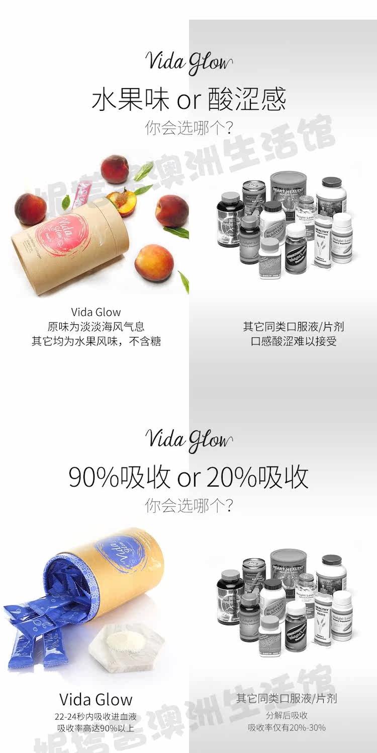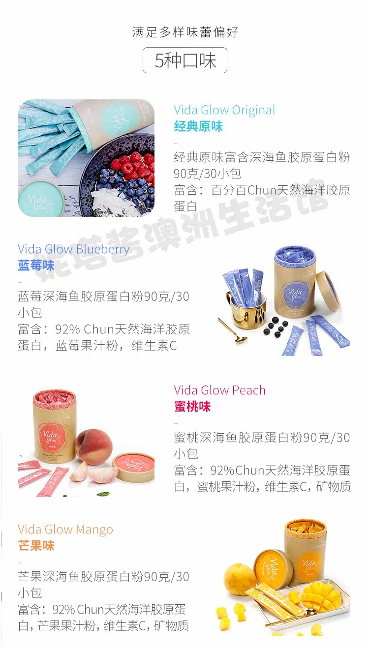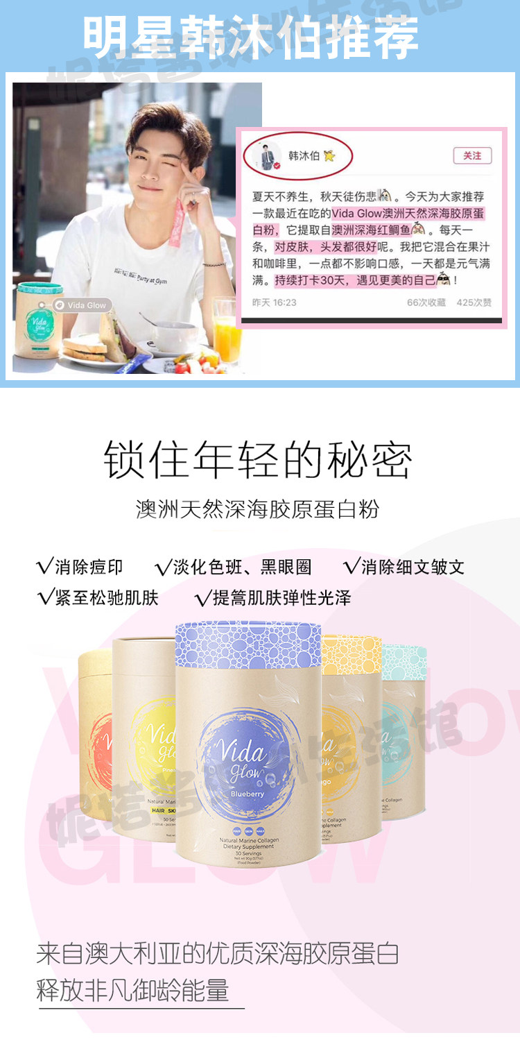 Австралия приобретает Vida Glow Hydrolyzed Deep -Sea Fish Collagen Peptide Powder Оригинальный вкус 3 грамм*30 упаковки 5 вкусов