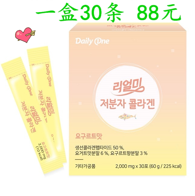 Южная Корея ежедневно одно низкомолекулярное пероральное коллагеновое порошок, питье ярко -белый антиолд, аромат йогурта 30 штук