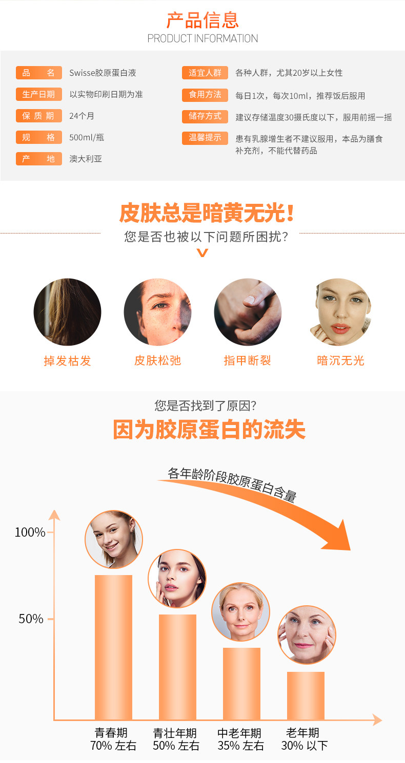 Сыворотка, осветляющий косметический коллаген, витамин C, 500 мл