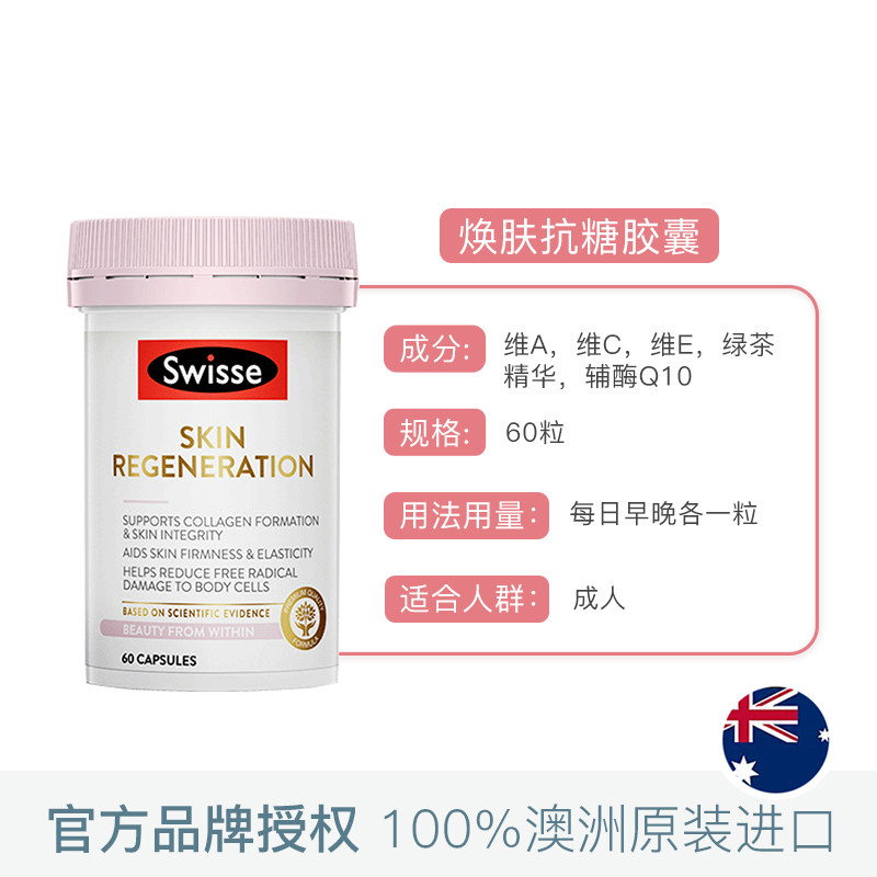 Австралия Swisse Anti -Sugar Pill Pill Отбеливание отбеливающего капсулы против гликированного анти -наживания красоты жидко