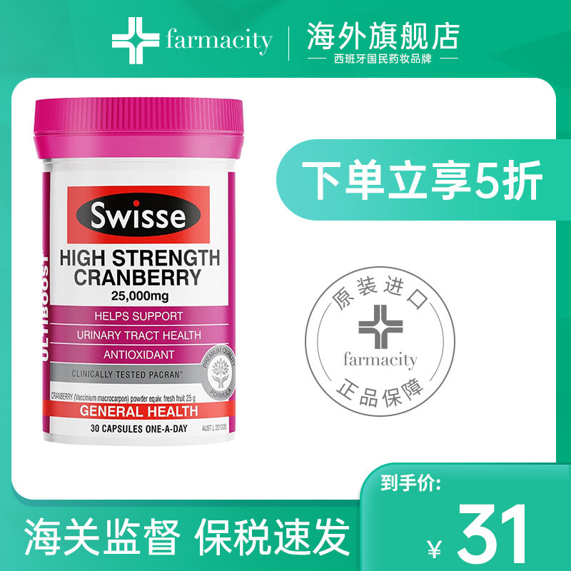 Австралия Swisse Высокая концентрация Cross -Berbor Capsule, Защитное здоровье мочи 30 Капсула Высокая концентрация продуктов питания здоровья
