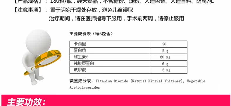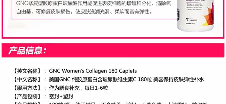 Импортный восстанавливающий осветляющий коллаген с гиалуроновой кислотой, США, витамин C, 180 штук