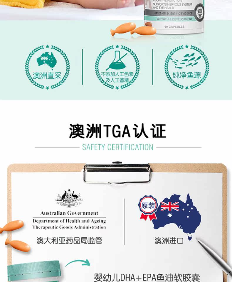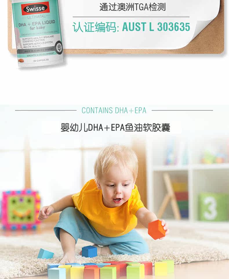 Австралия Swisse Импортировал младенец DHA+EPA Мягкая капсула.