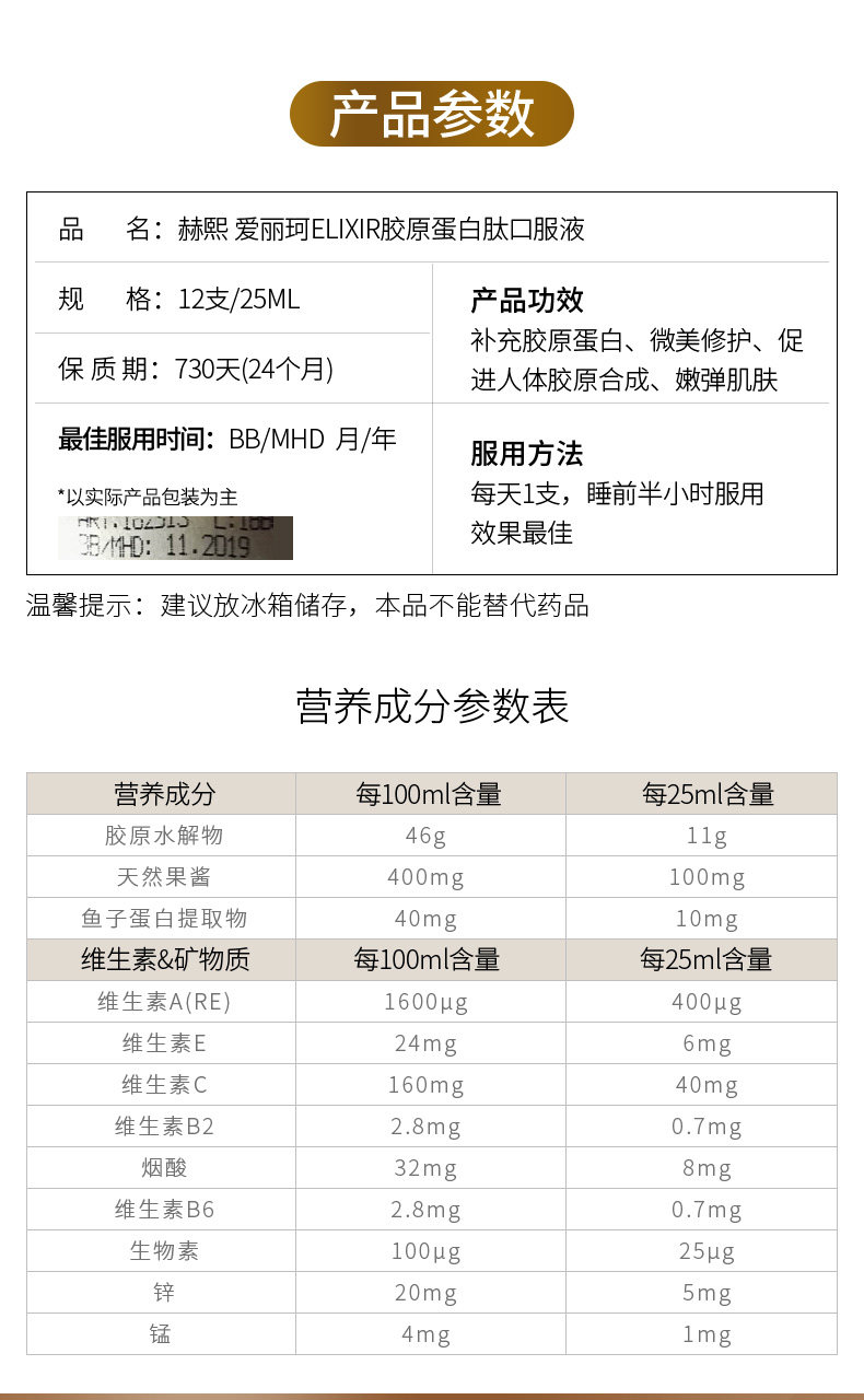 Spot подлинный анти -Counterfeit Germany Hech Hech Hoe Collagen Маленький молекулярный пептид пероральный раствор
