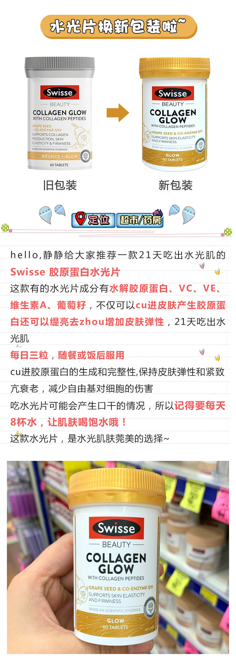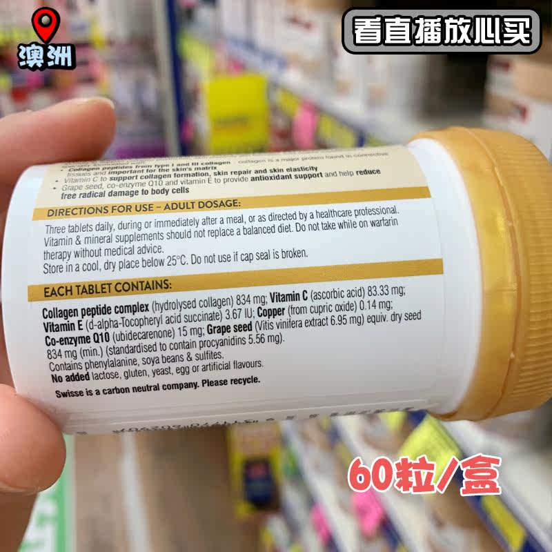 Австралийский коллаген коллаген водяной ламп пикин пероральный тиен, гипертуру, старение старение 60 капсул