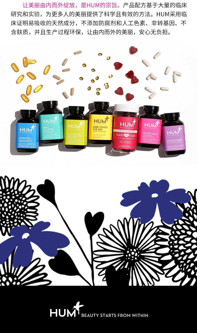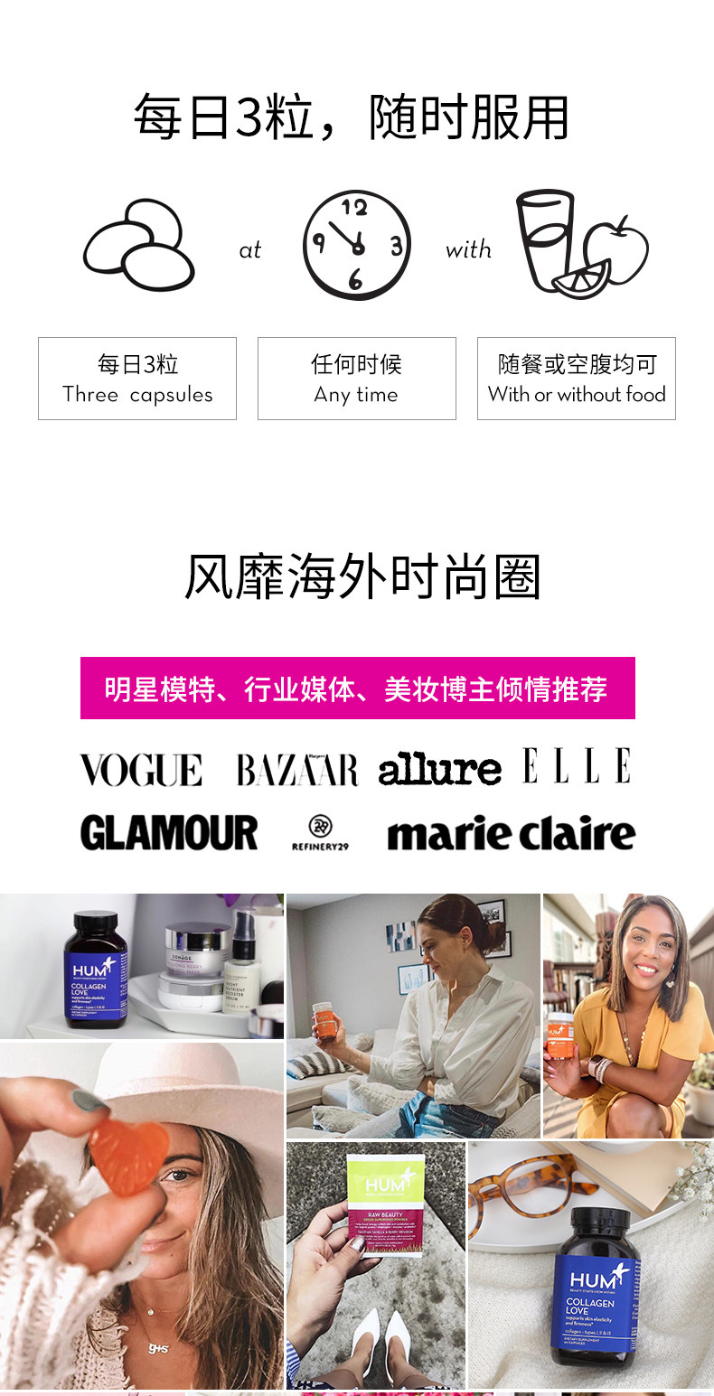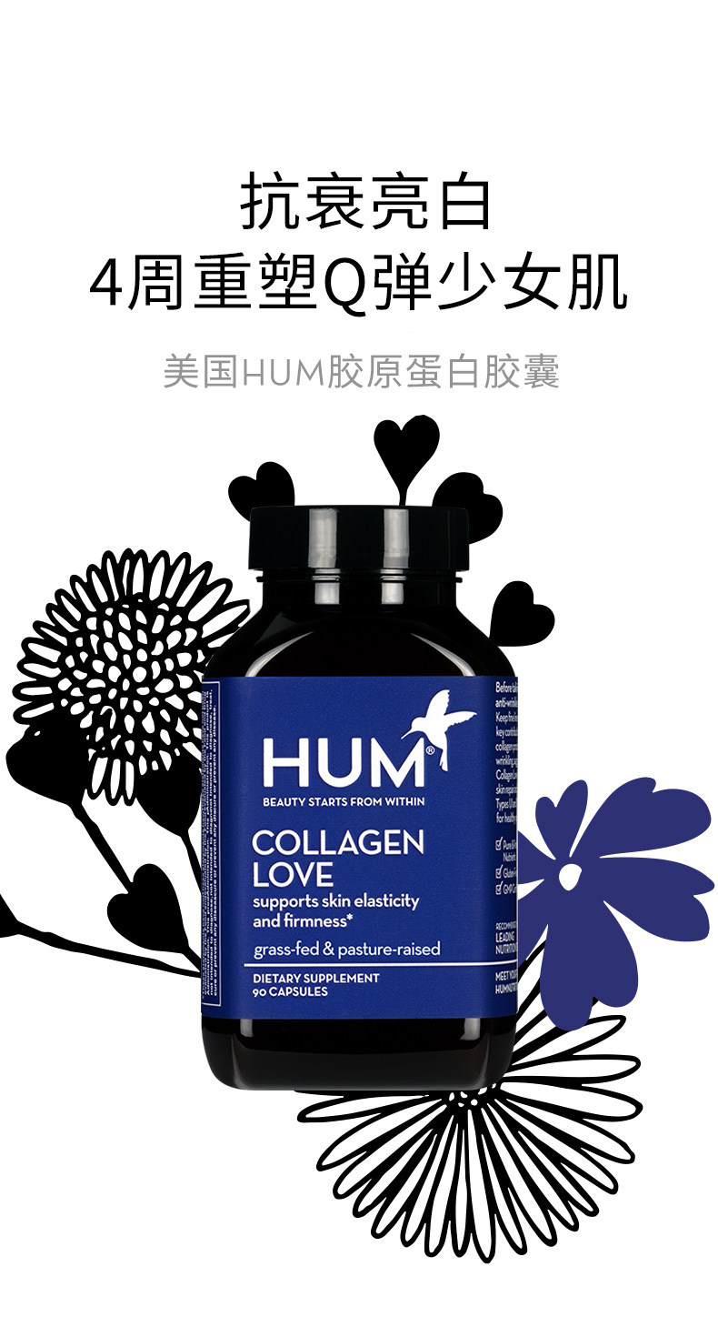 Hum Collagen Capsule 90 зерна/бутылка Ярко -белая увлажняющая витаминная кожа для волос кожа для поддержания американского взрослого