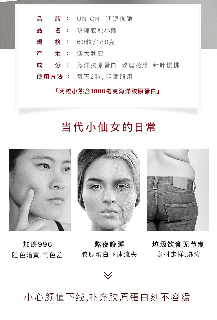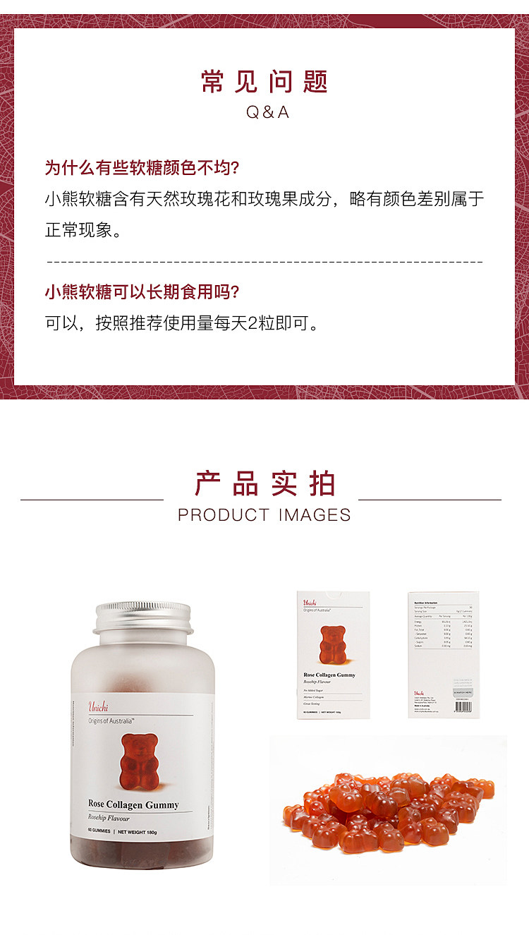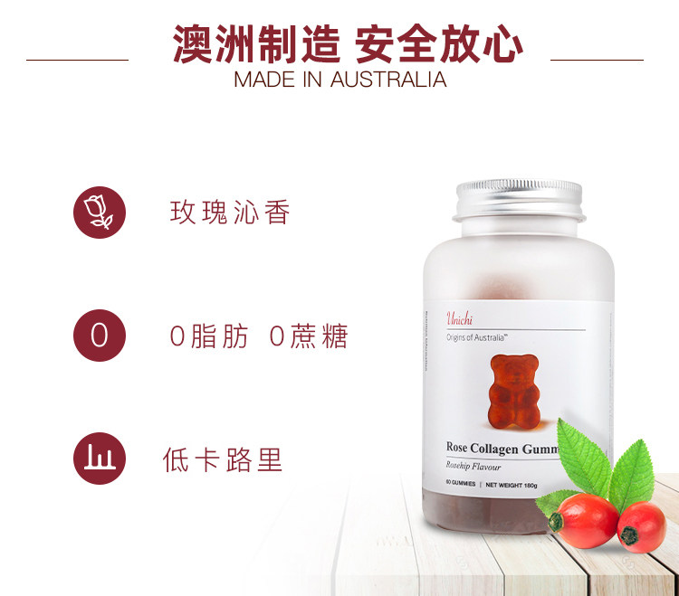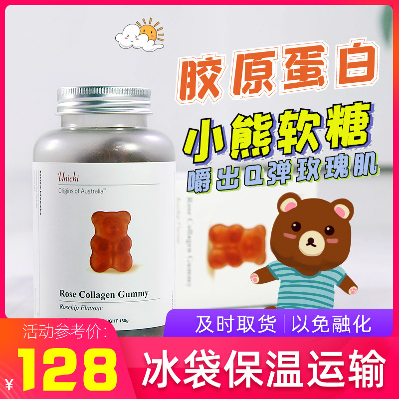 Австралийская Unichi Rose Collagen Bears 60 зерно морского коллагена VC Bright White очень вкусно!