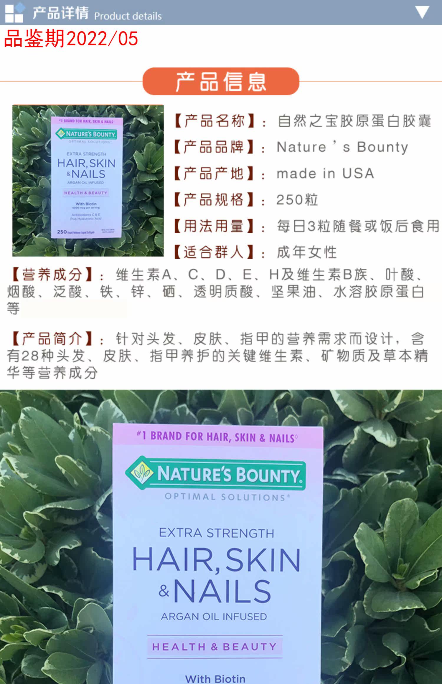 Американская прямая почтовая почта Merront Armor Northern Hair Nature Nature#39; Scounty Nature Treasure Collagen 250 Капсулы