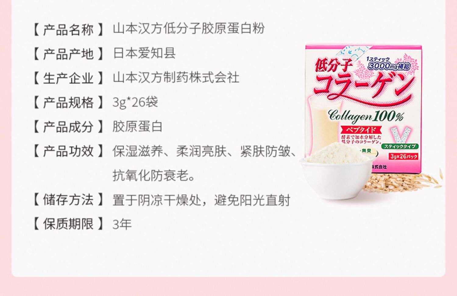 山本汉方 Японский импортный разглаживающий антивозрастной коллаген, 3г
