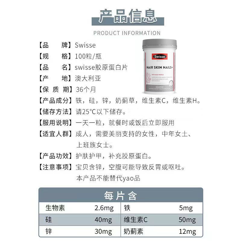Австралийские коллагеновые таблетки Swisse, эссенция кровавого апельсина, уход за волосами, непероральный жидкий коллаген, 100 таблеток