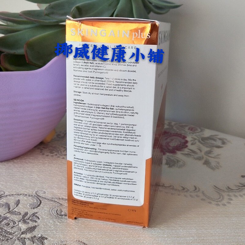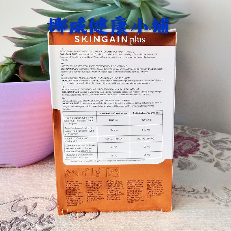 Норвежский местный ветеран -коллаген Skingain Обновленная версия Plus, 30 пакетов на коробку, от одной до двух упаковок в день и пивоварения теплой воды. Стоимость этого продукта был отправлен на внутренний склад.