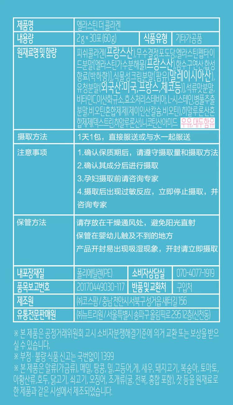 Корейская прямая почтовая почта Quan Zhixian Nutrionelife BB Лаборатория Лаборатория низкомолекулярная рыба элатиновый эластичный белок