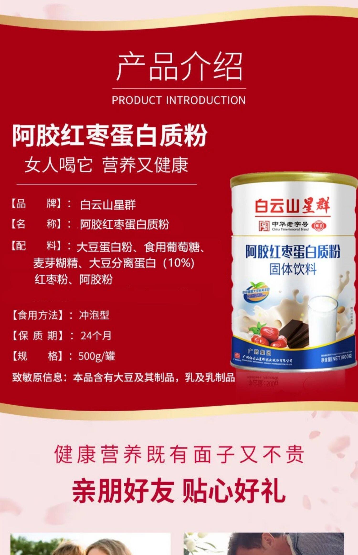Ejiao Red Cate Dates Protein Powder Высокий белок с высоким белком повышенным физическим иммунитетом Женщины Женщины Коллаген Коллаген Женский протеиновый порошок протеина