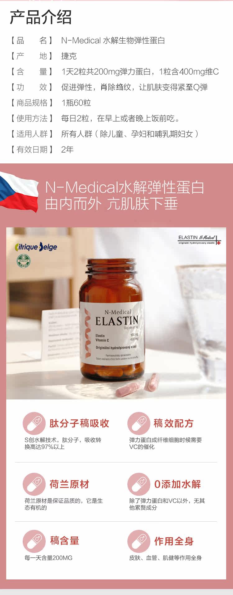 Чешский H-Medizin гидролизуемый биологический упругой белок Высокое содержание высокое содержание активное эндогенное эндогенное эндогенное