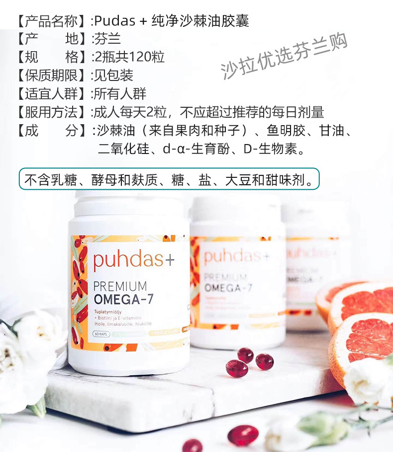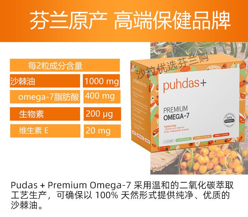Spot Finnish Seabuckthorn Oil Capsules Puhdas + Pure Omega7 желудочно-кишечная слизистая оболочка защищает кожу и антивозрастный иммунитет