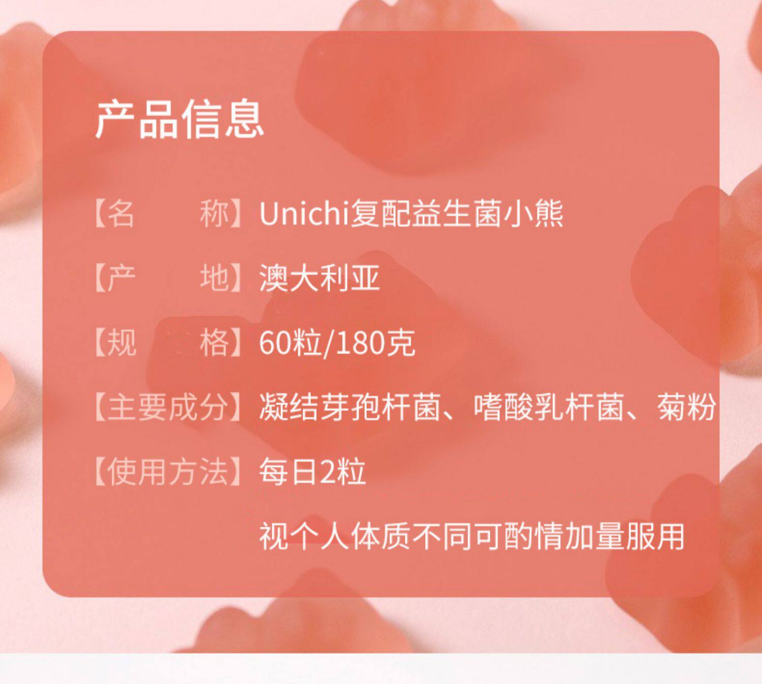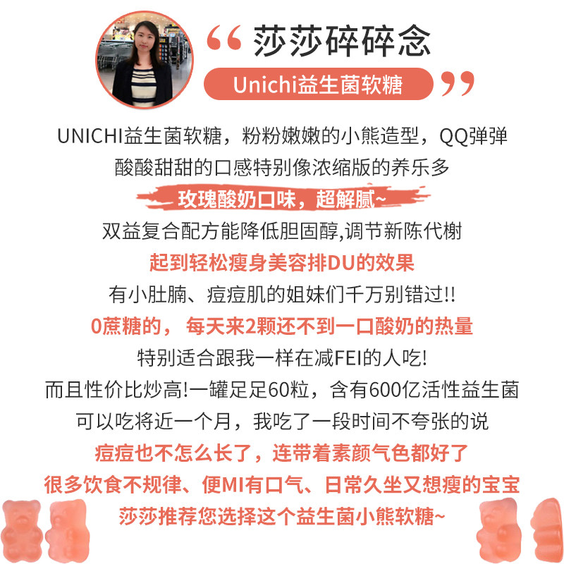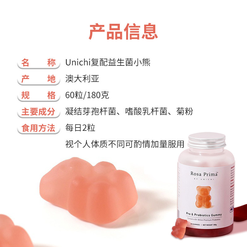 Австралия Unichi Composite Formula Probiotic Puff Sugars Bears Подонит взрослые желудочно -кишечные пробиотики 60 капсулы
