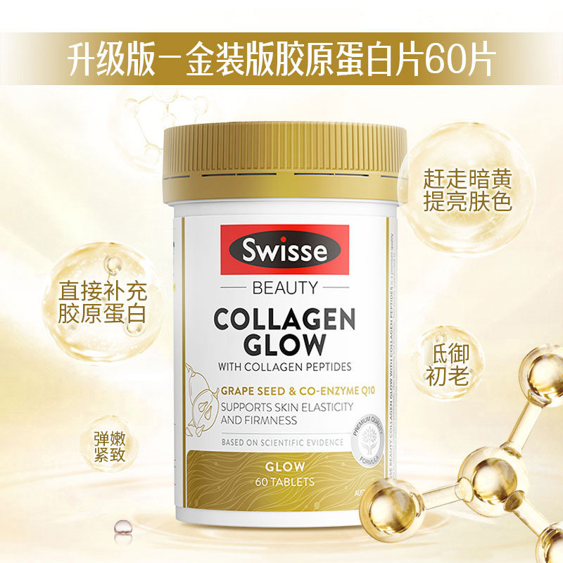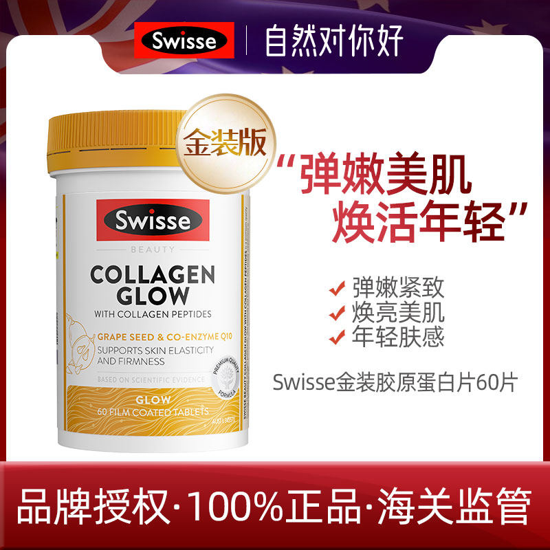 Австралия Swisse Gold Collagen Peptide 60 Таблетки с добавлением коллагеновой пептидной воды легкая кожа 25.1