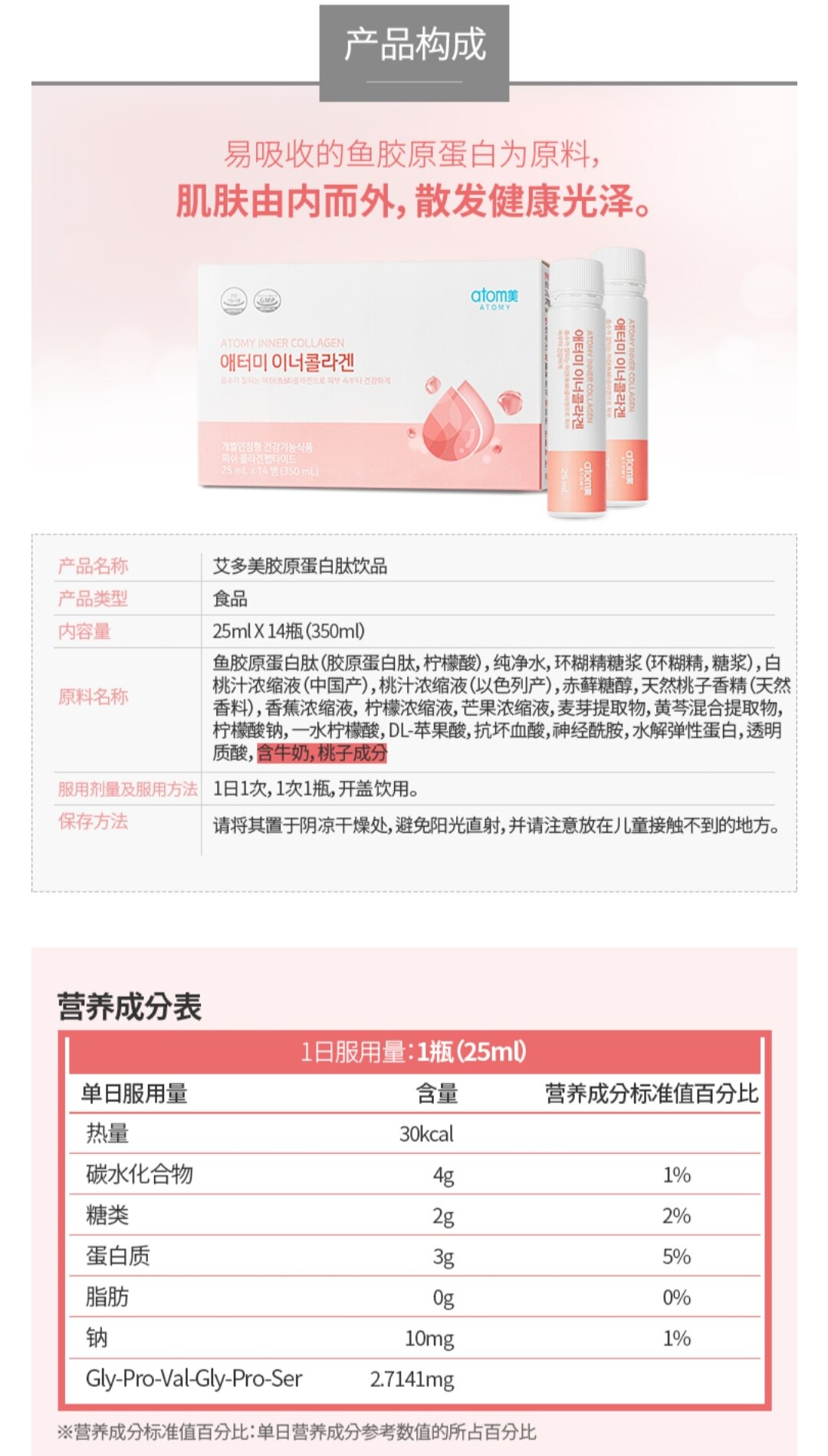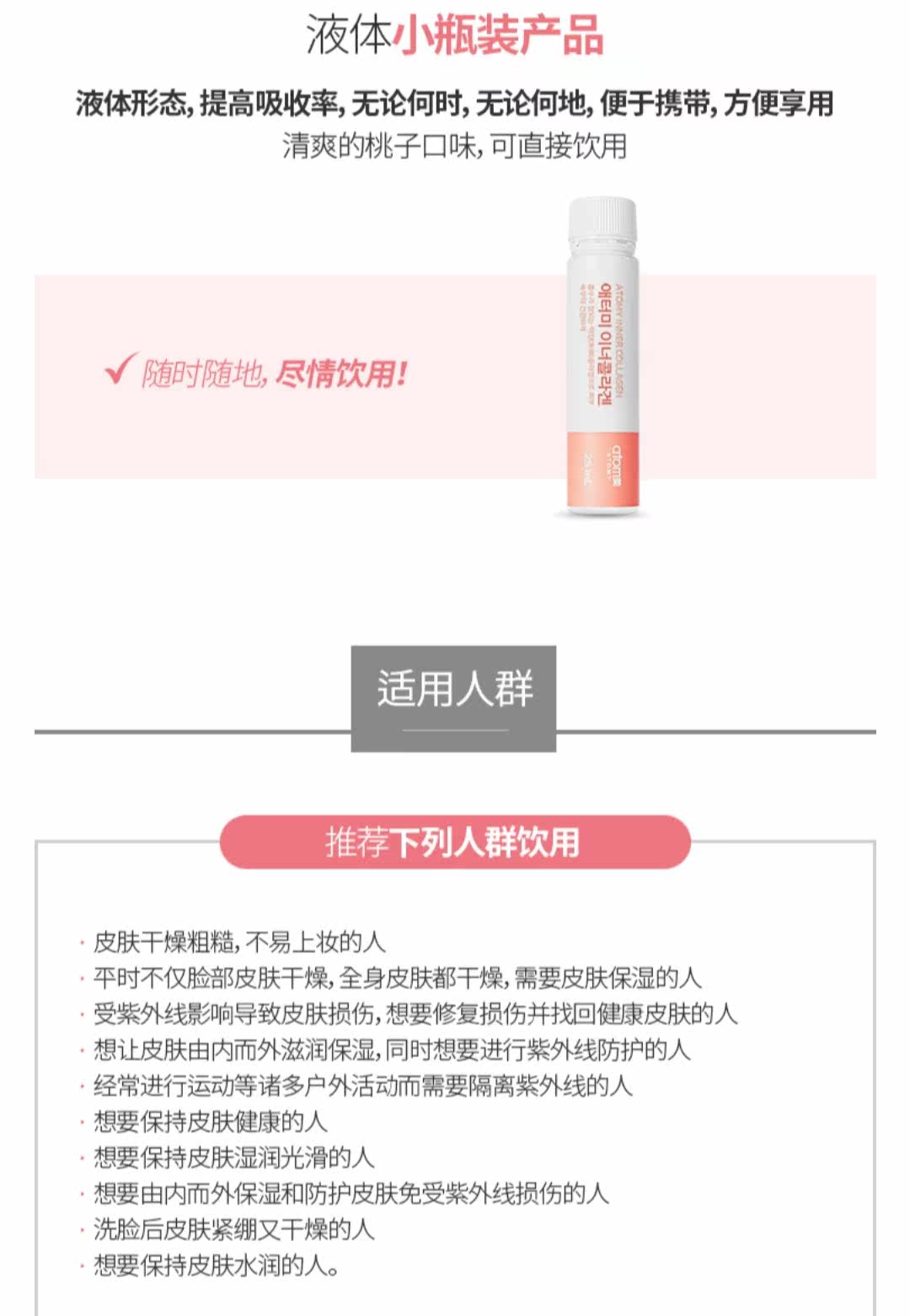 Корейский айдом рыб коллаген пептид напиток белый персиковый вкус маленькая молекула пероральная жидкость 14 бутылок * 25 мл